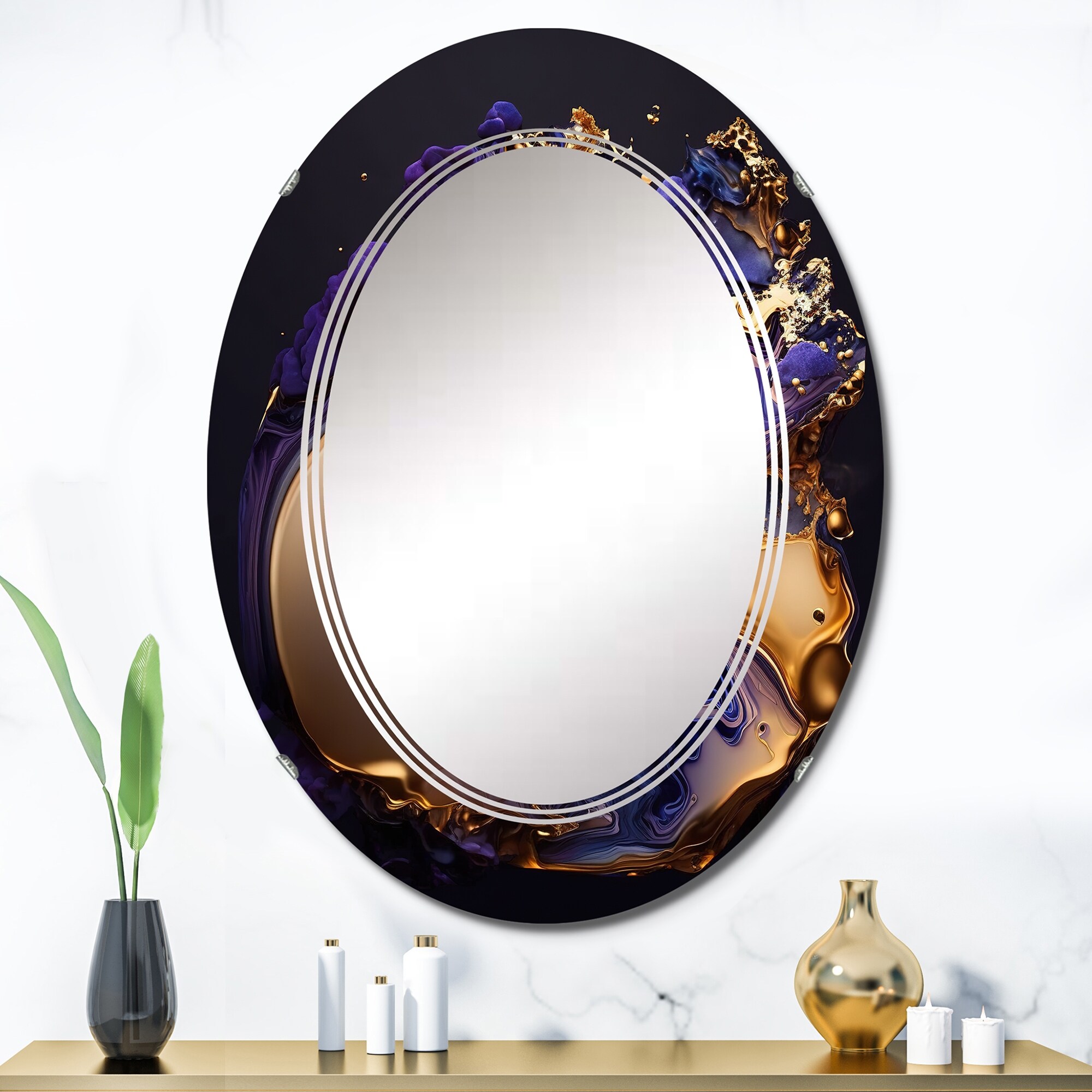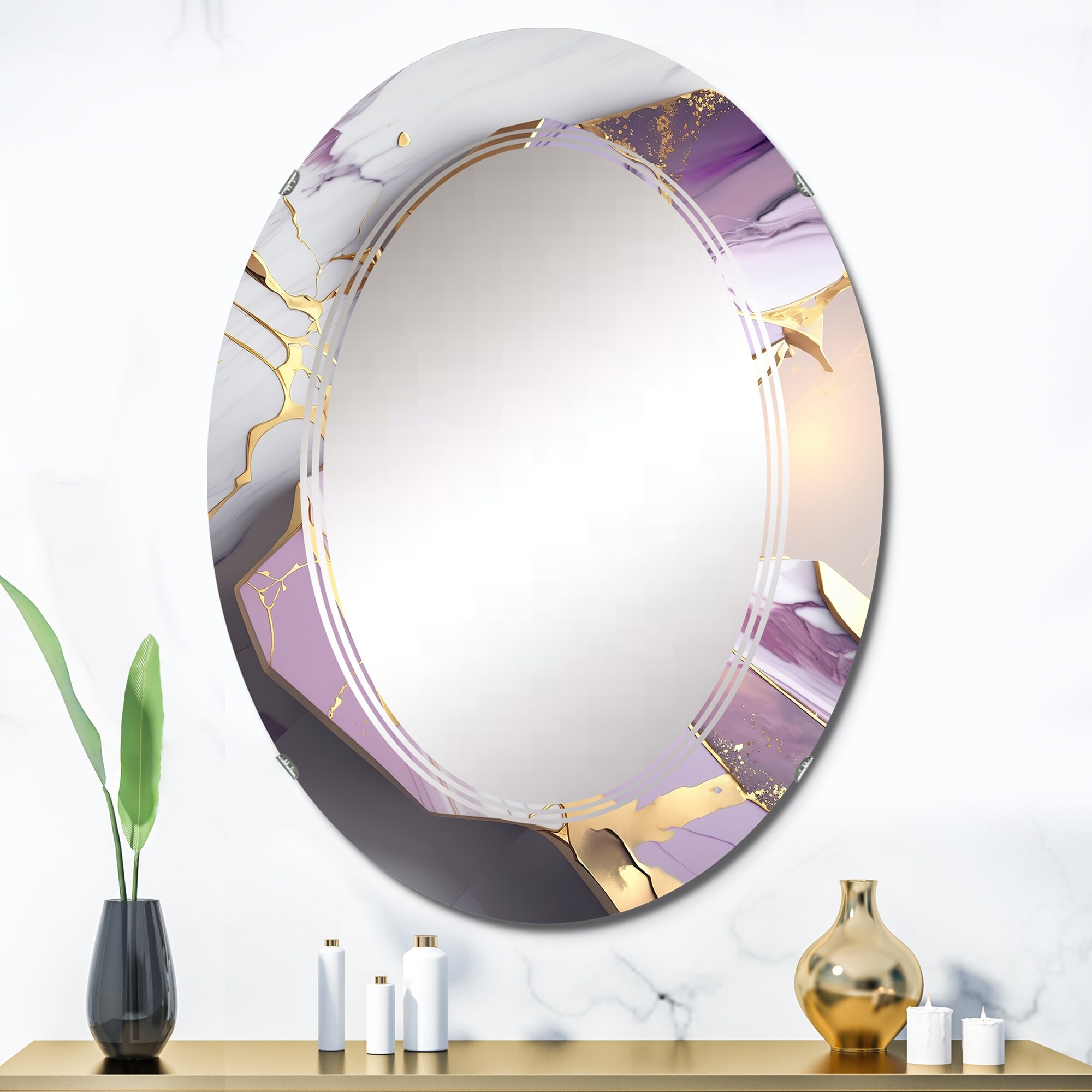 Designart 'Abstract Marble Geode Purple II' Printed Abstract Liquid Ink Wall Mirror