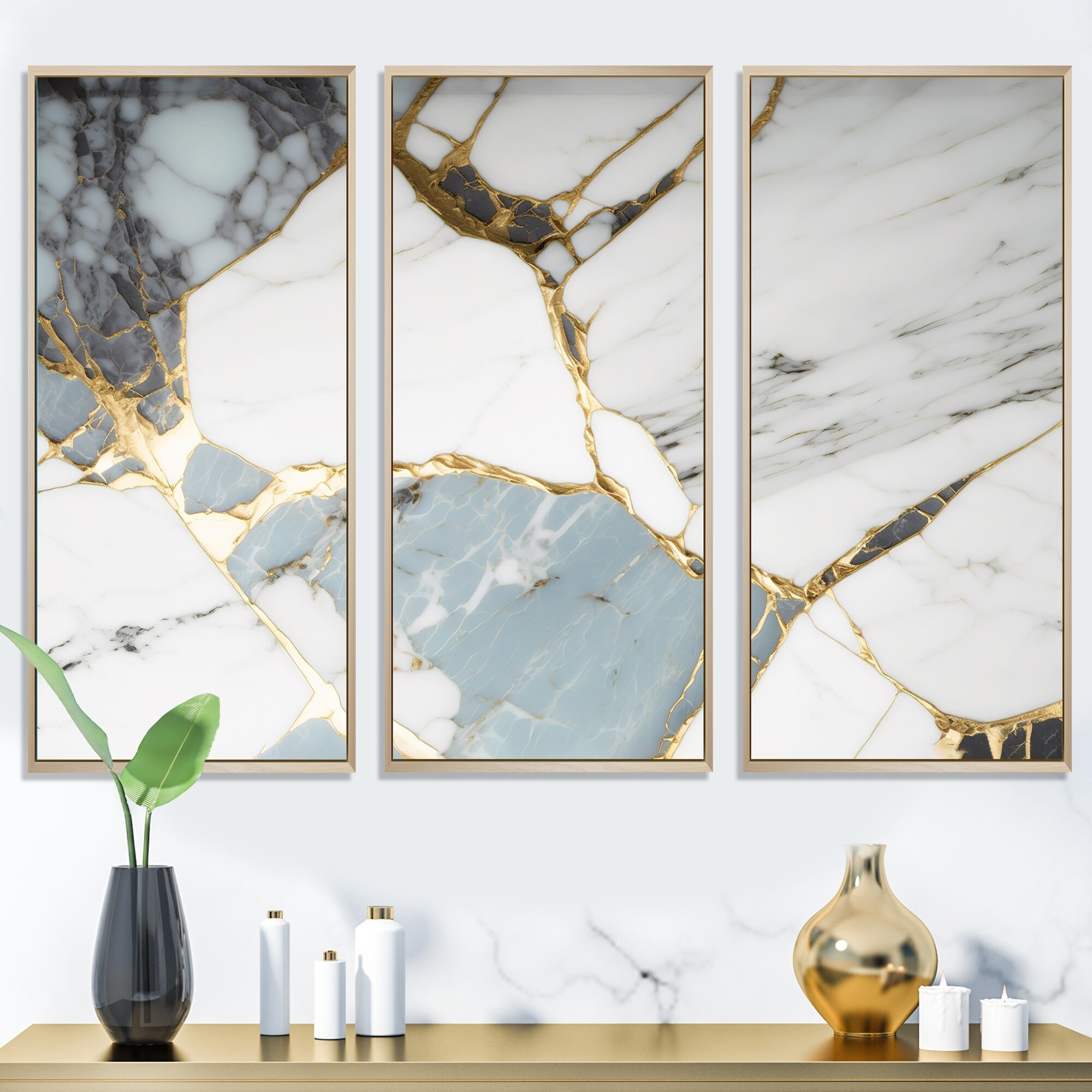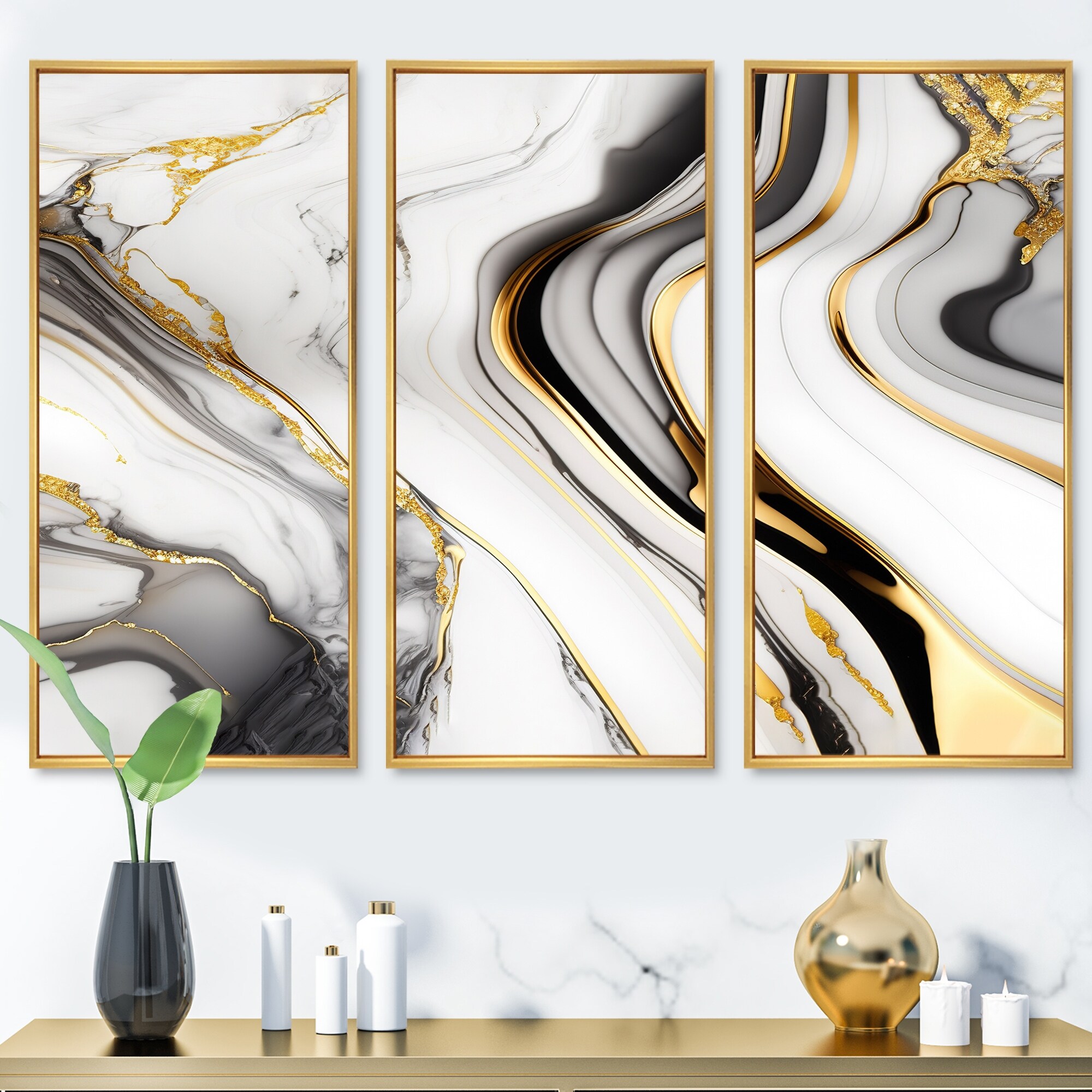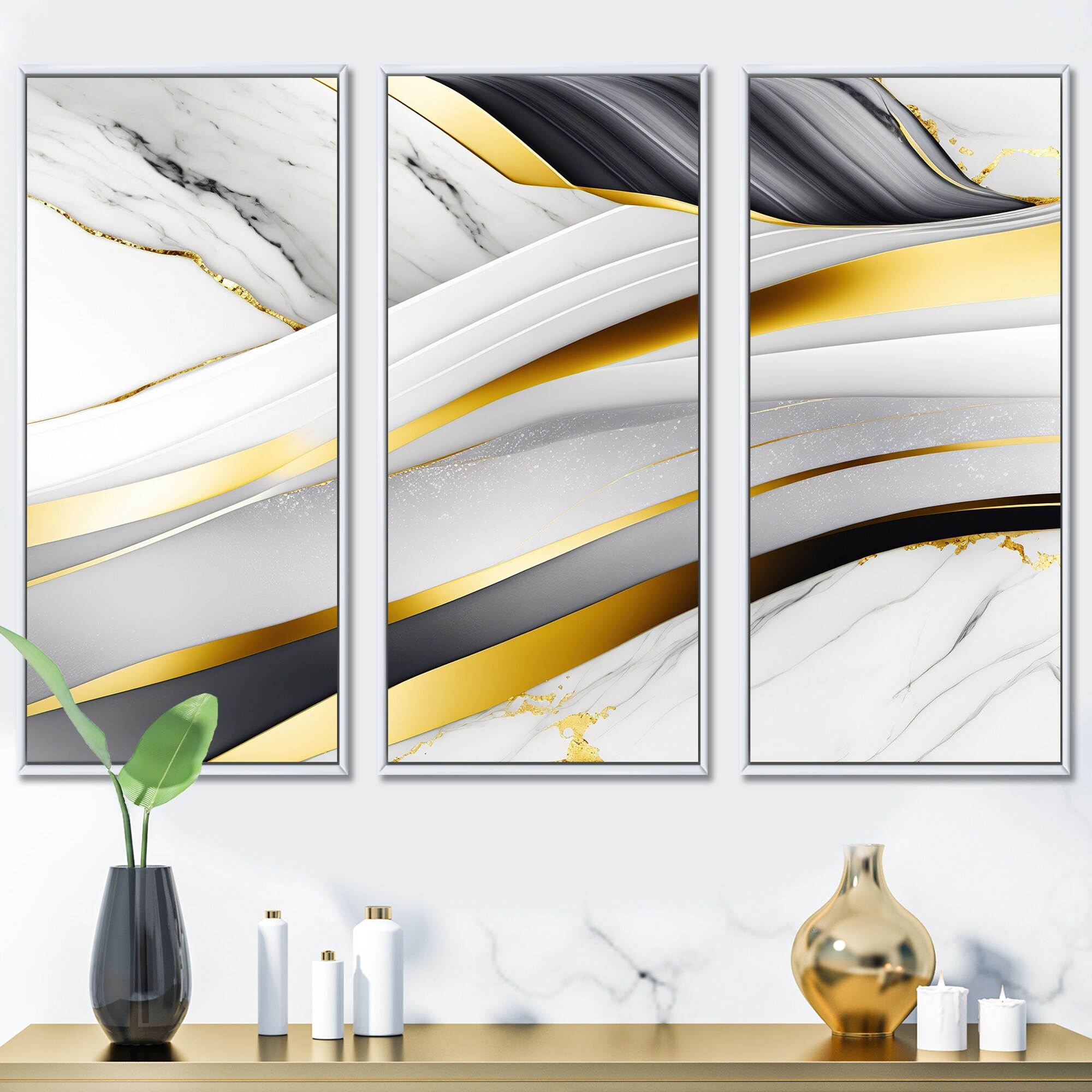 Designart "Abstract Geode Gold And White Marble I" Abstract Marble Framed Canvas Art Print - 3 Panels