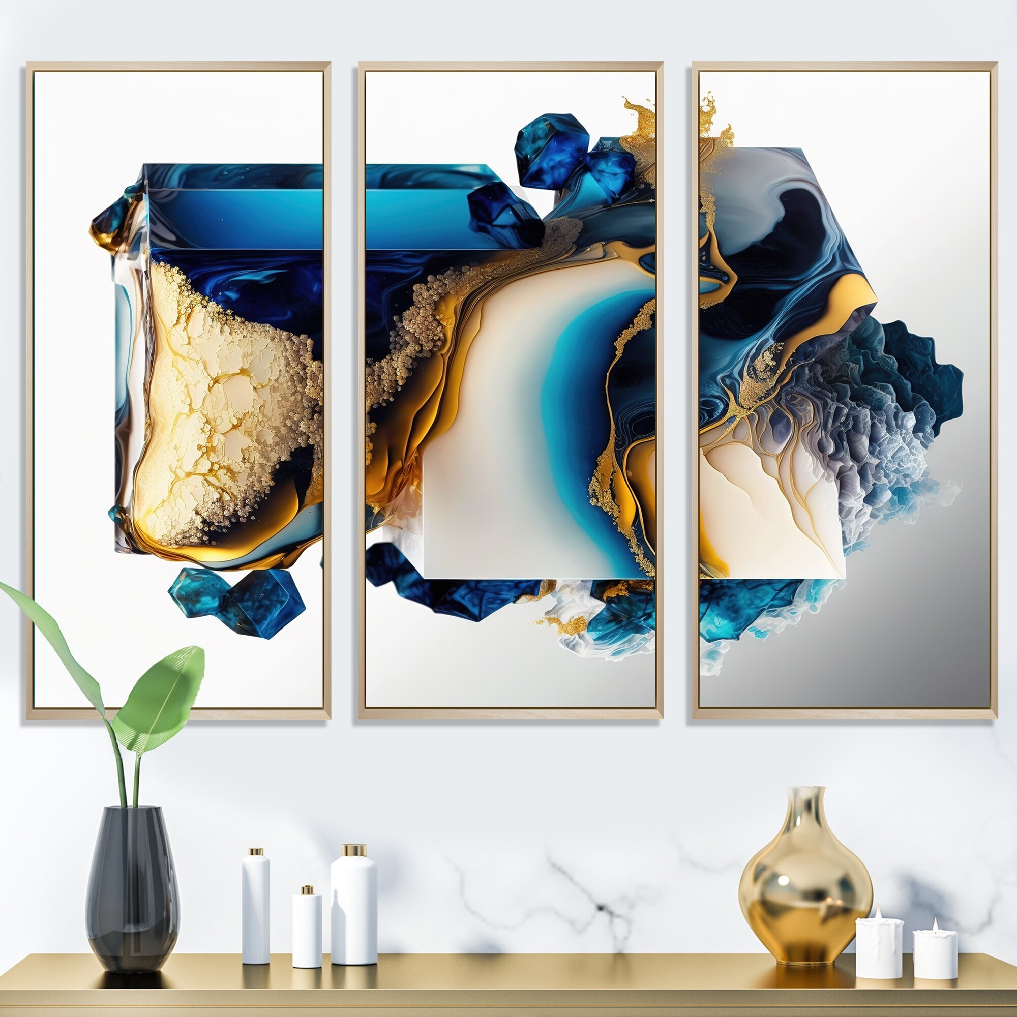Designart "Abstract Marble Geode Blue I" Abstract Marble Framed Canvas Art Print - 3 Panels