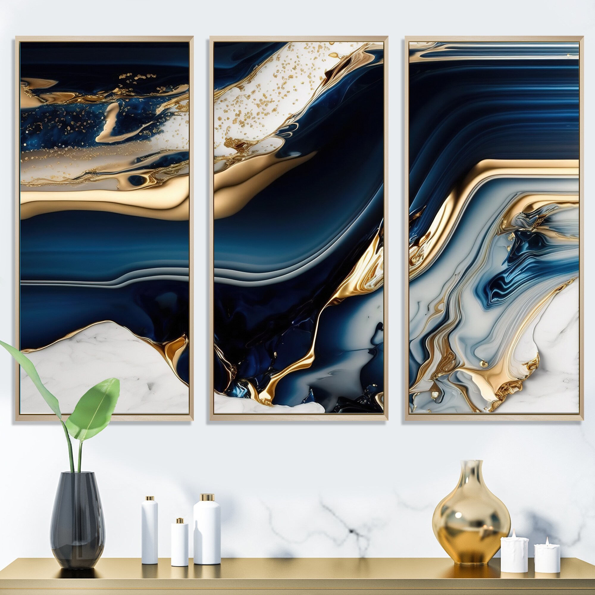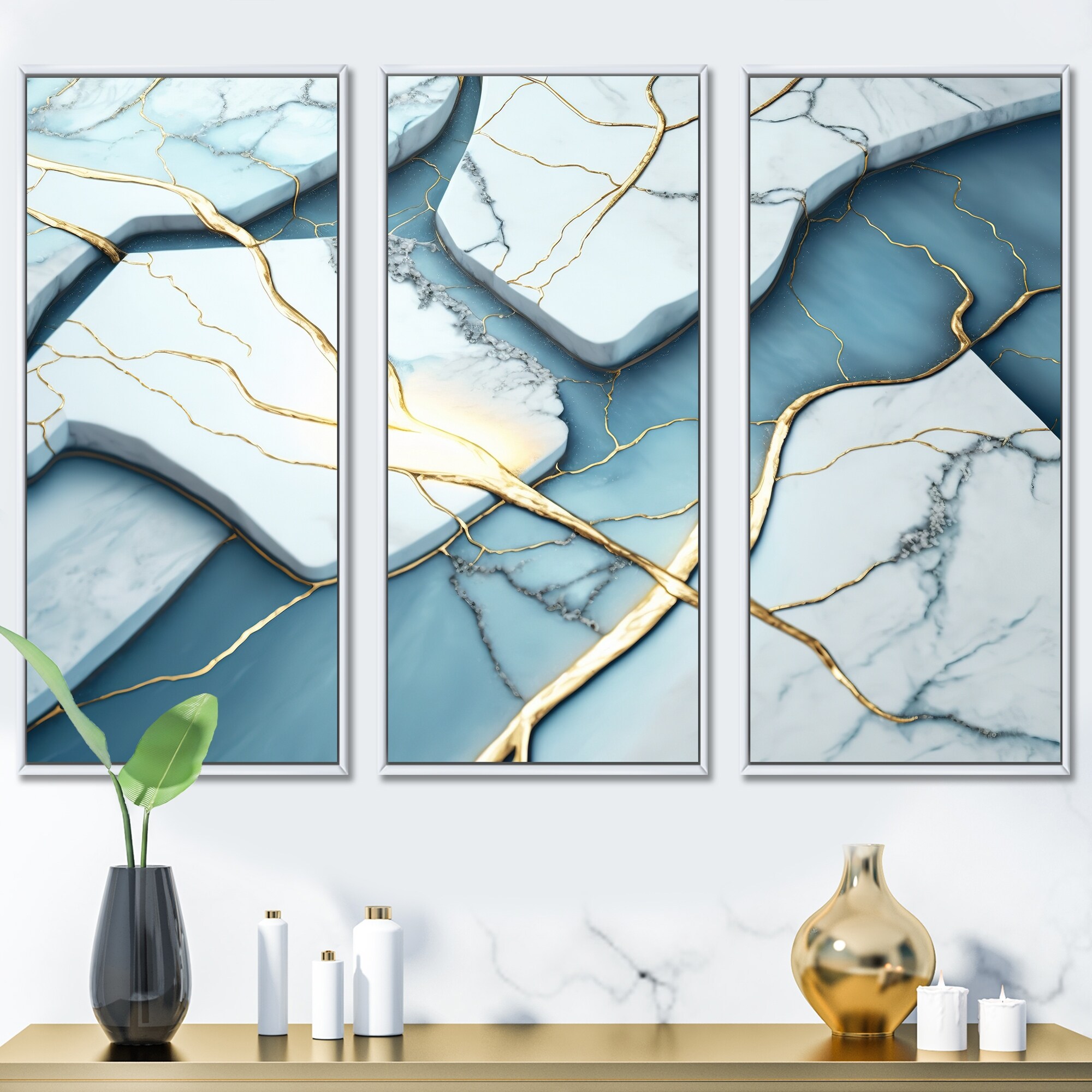 Designart "Abstract Geode Marble Blue IV" Abstract Marble Framed Canvas Art Print - 3 Panels