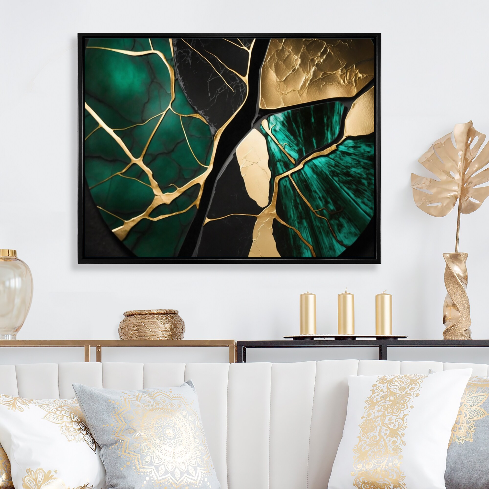 Designart "Abstract Geode Green I" Marble Abstract Framed Canvas Art Print