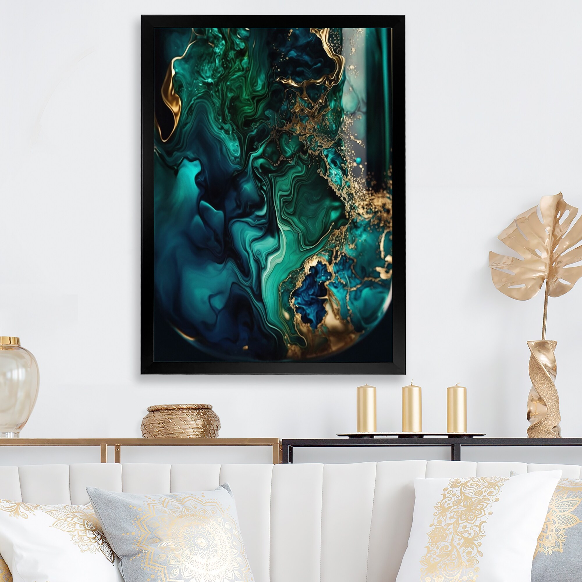 Designart "Abstract Geode Marble Green And Blue II" Marble Abstract Framed Art Print