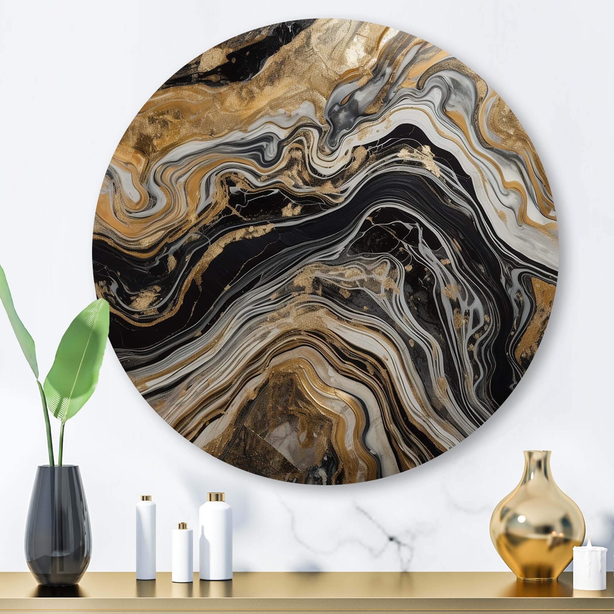 Designart "Exploring The Depths of Black Gold Geode II" Abstract Marble Metal Round Wall Art