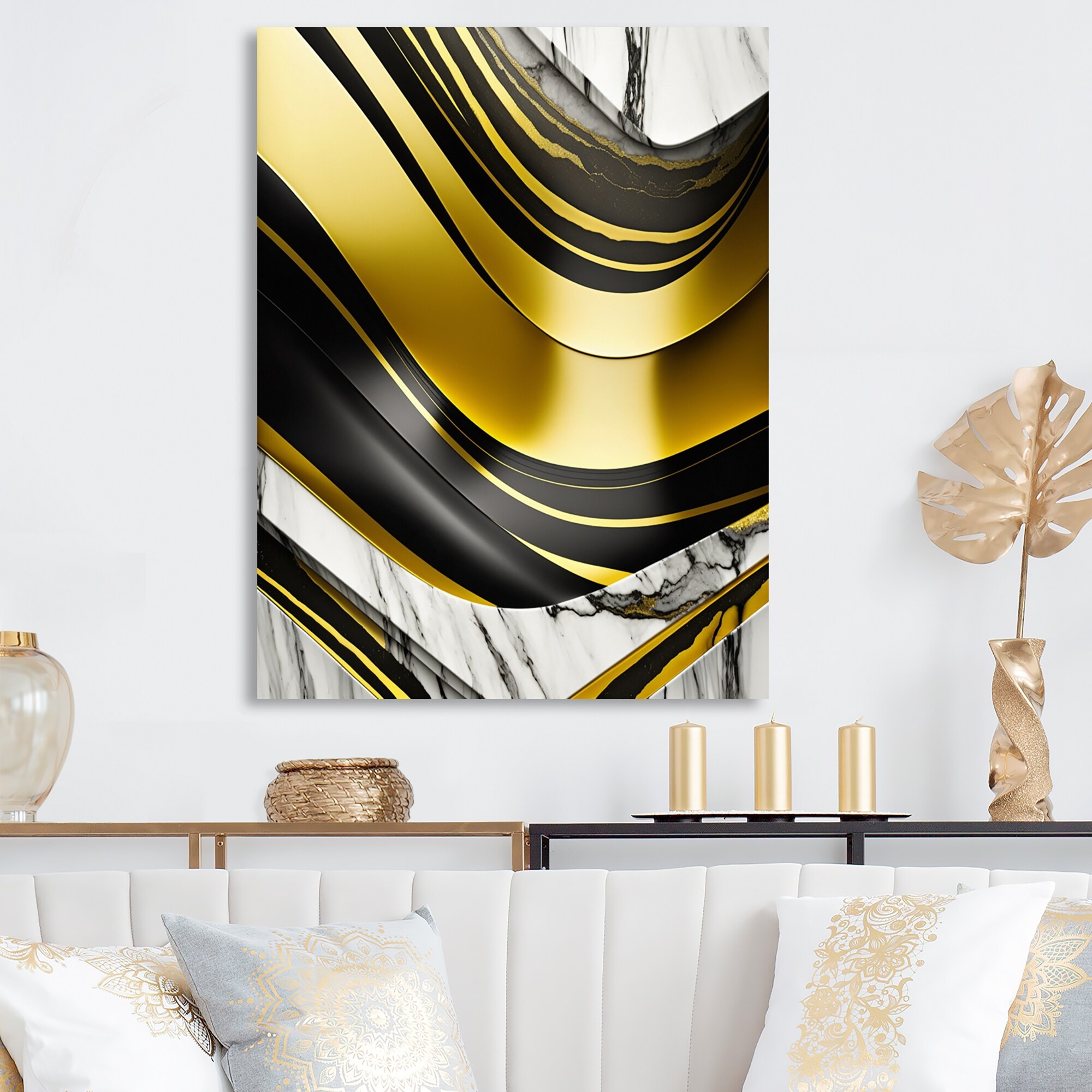 Designart 'Abstract Geode Marble Waves Gold I' Modern Waves Metal Wall Art