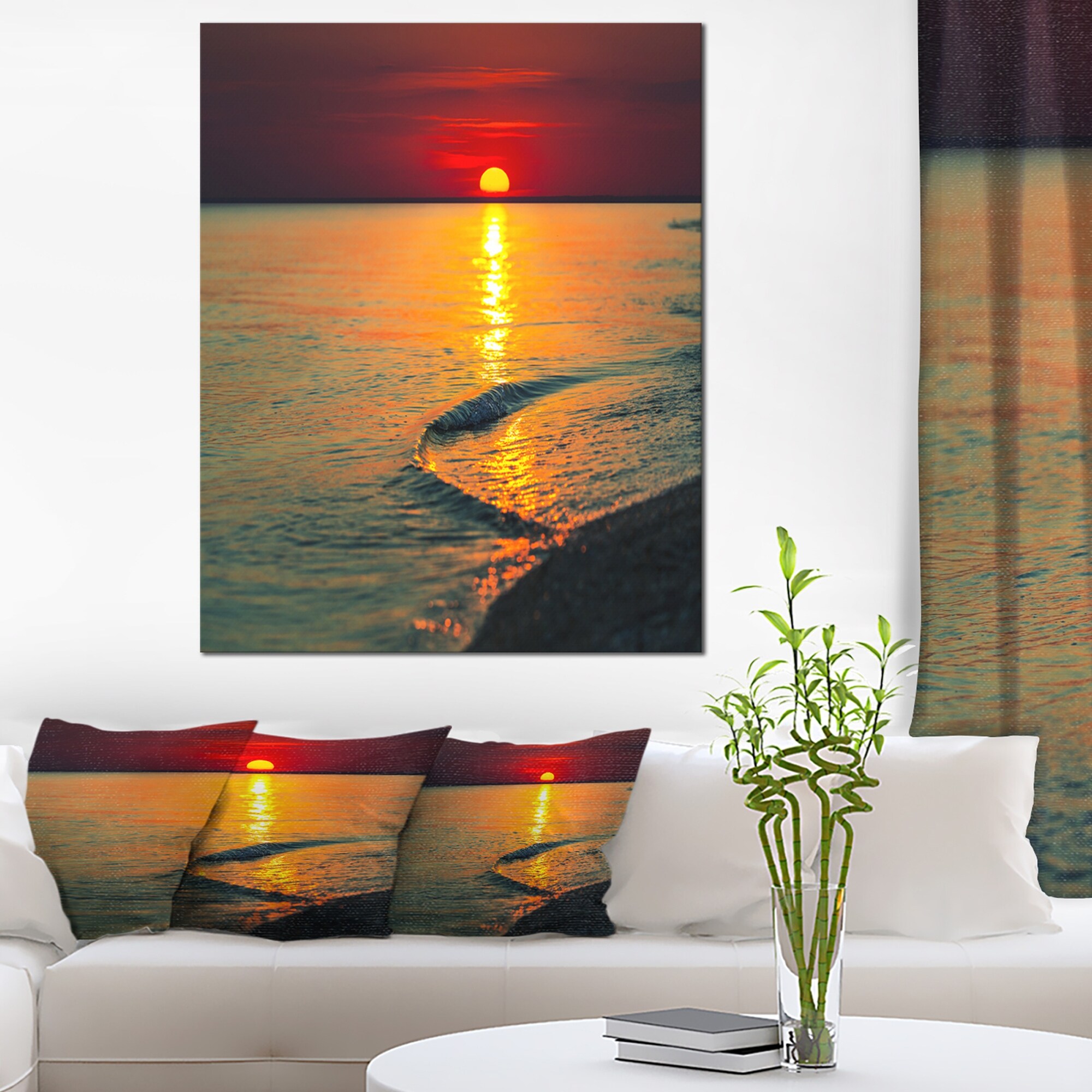 Designart "Setting Sun Giving Color to Waters" Modern Beach Canvas Art Print