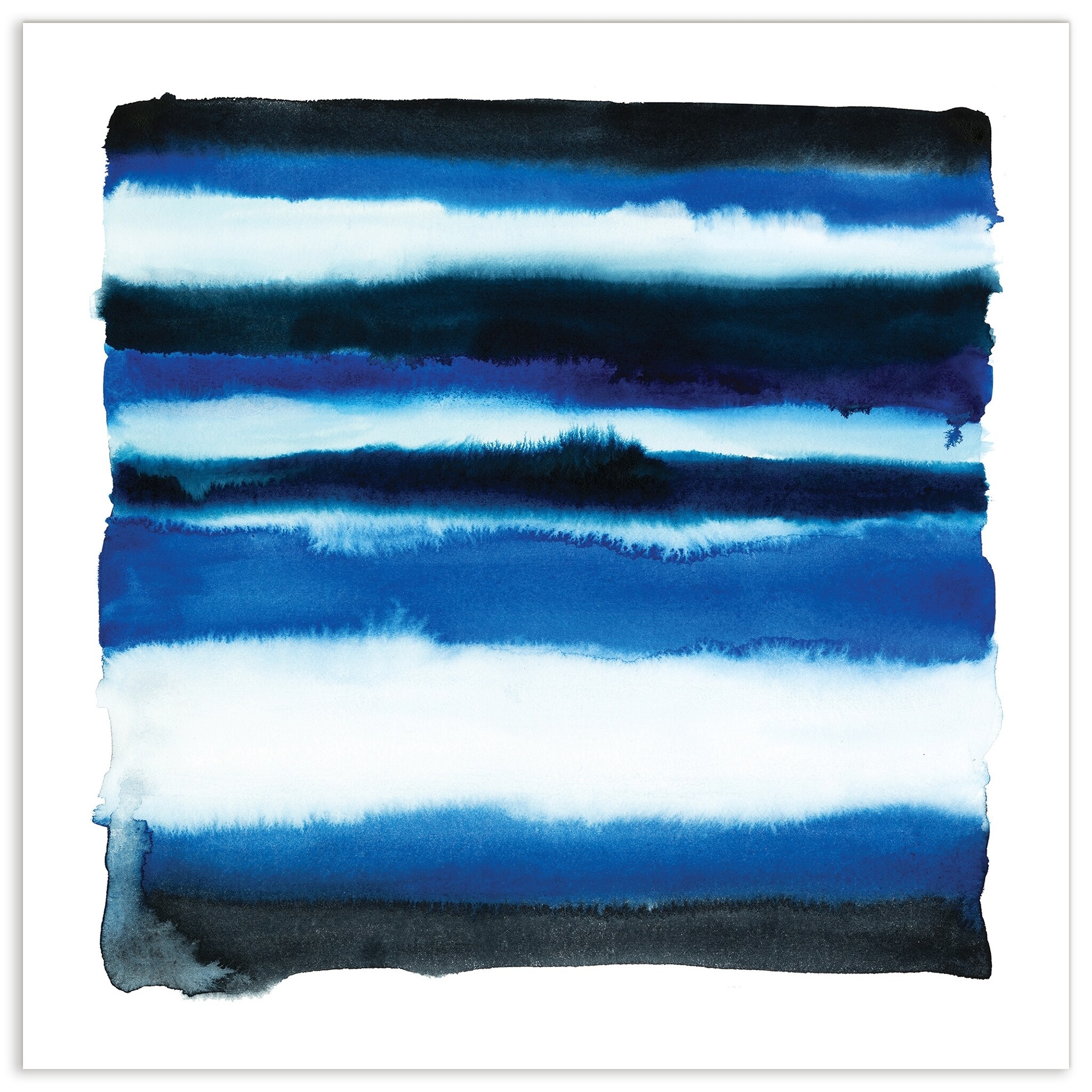"Ink Drop Crane" Glass Wall Art Printed on Frameless Free Floating Tempered Glass Panel - Blue/White