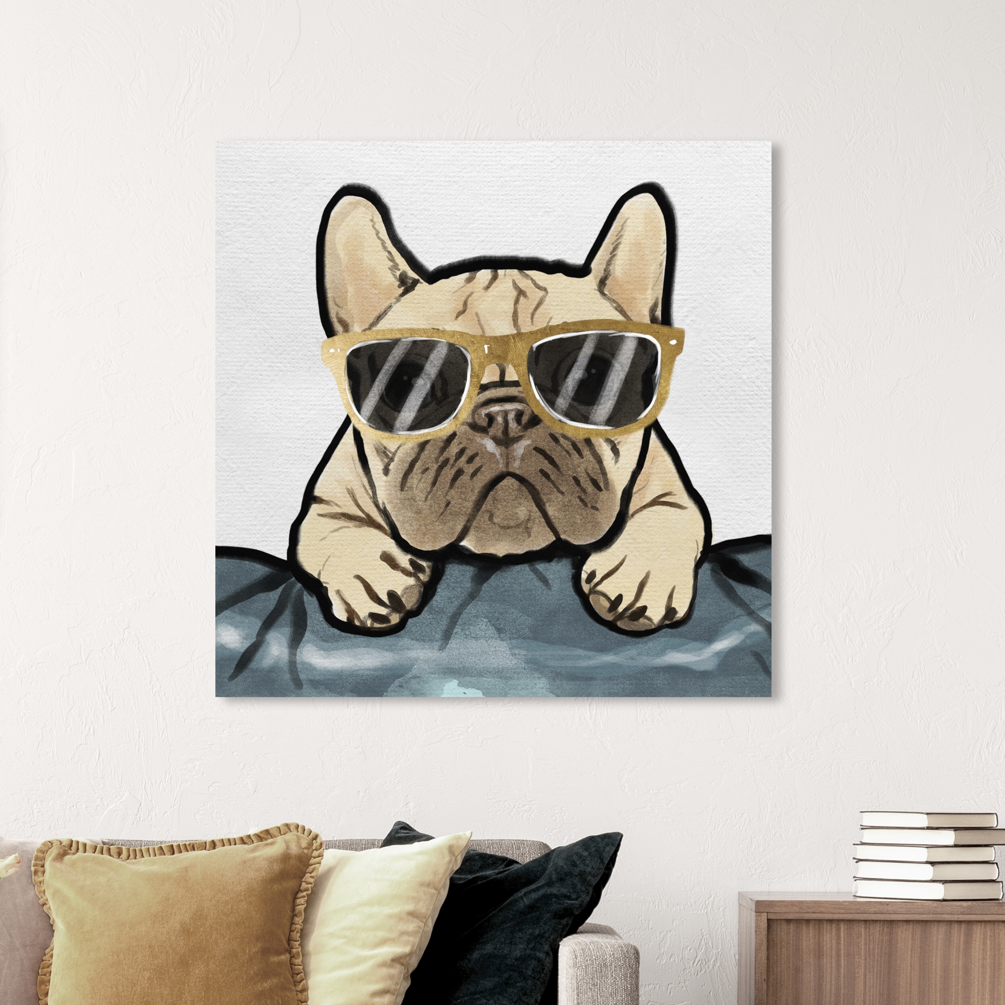 Oliver Gal 'Gold Glasses Nerdy Frenchie' Animals Wall Art Canvas Print - Brown, Black
