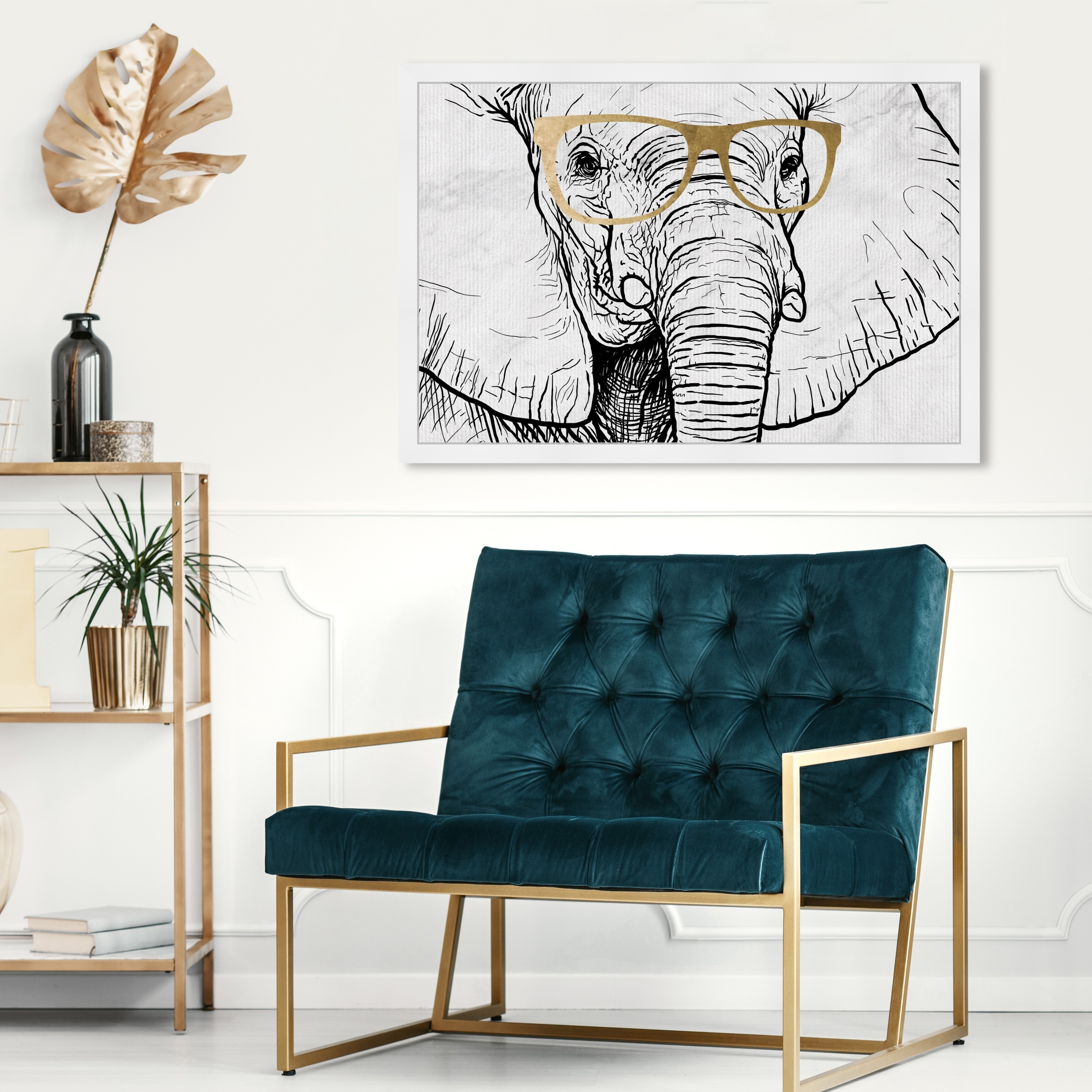 Oliver Gal 'Elephant and Gold Glasses' Animals Wall Art Framed Print Zoo and Wild Animals - White, Gold