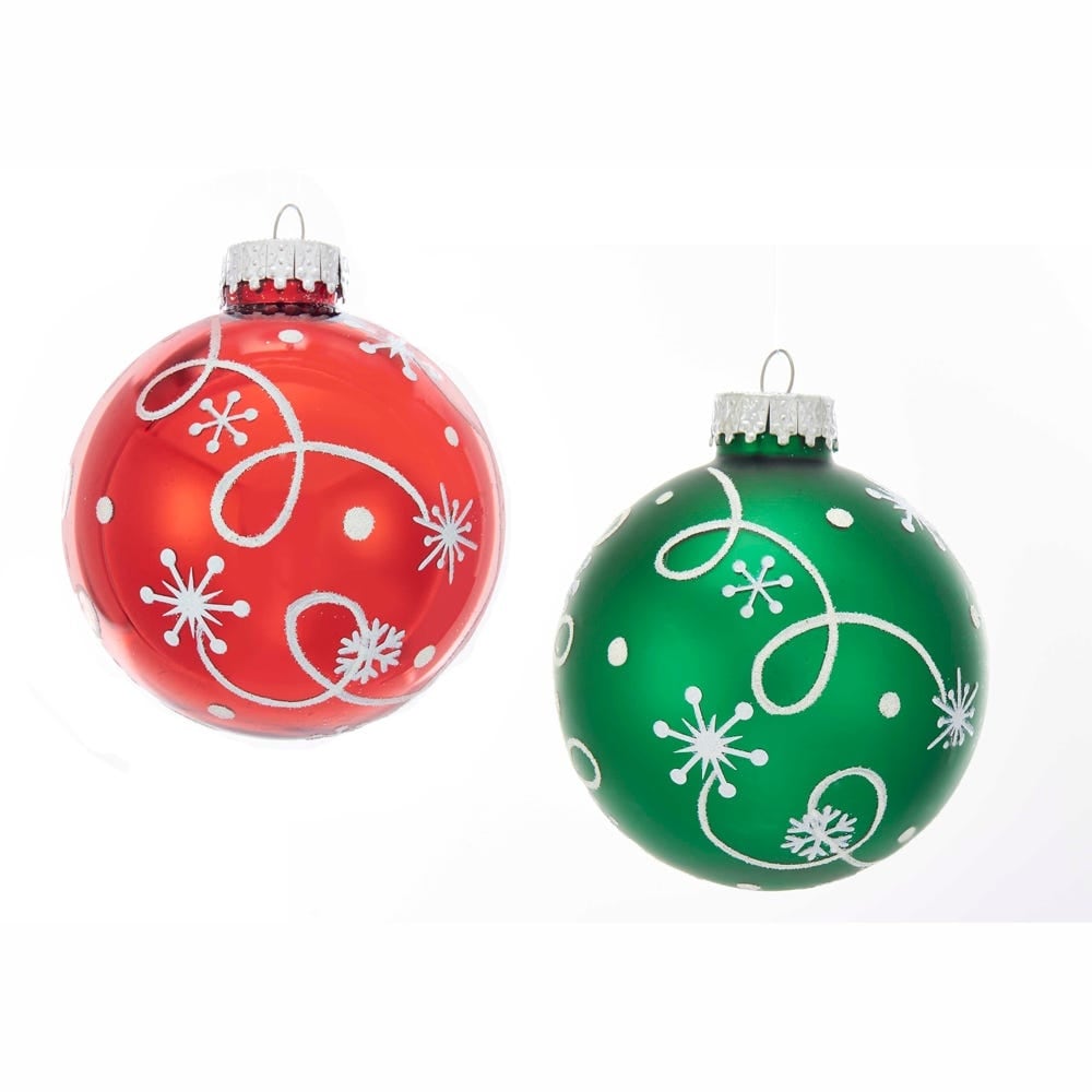 Kurt Adler 80MM Red And Green With Swirl Design Glass Ball Ornaments 6-Piece Box - 3.15"