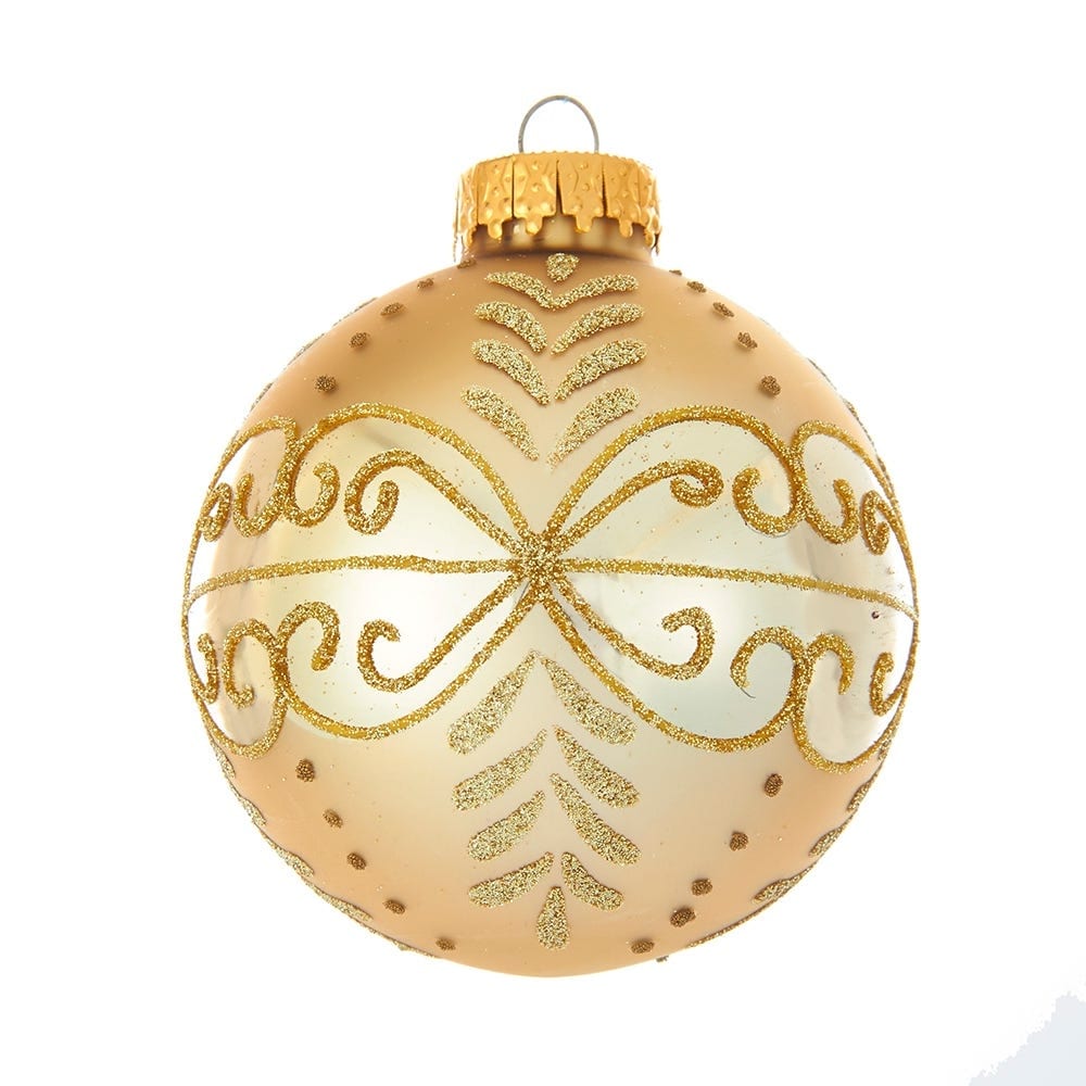 Kurt Adler 80MM Gold With Gold Pattern Glass Ball Ornaments, 6-Piece Box - 3.15"