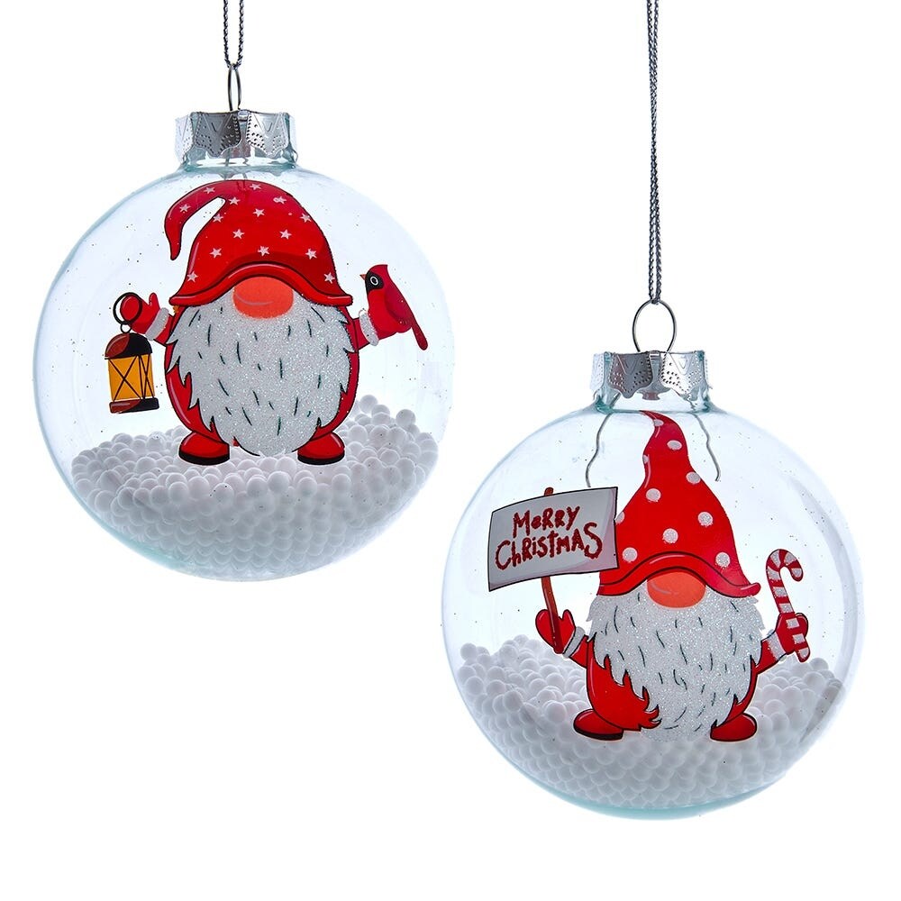 Kurt Adler 80MM Glass Transparent Gnome 6-Piece Ball Ornament Set