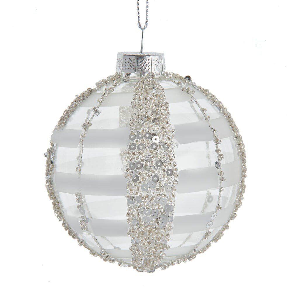 Kurt Adler 80MM Clear Glass Balls with Beads and Sequins Ornaments, 6-Piece Set