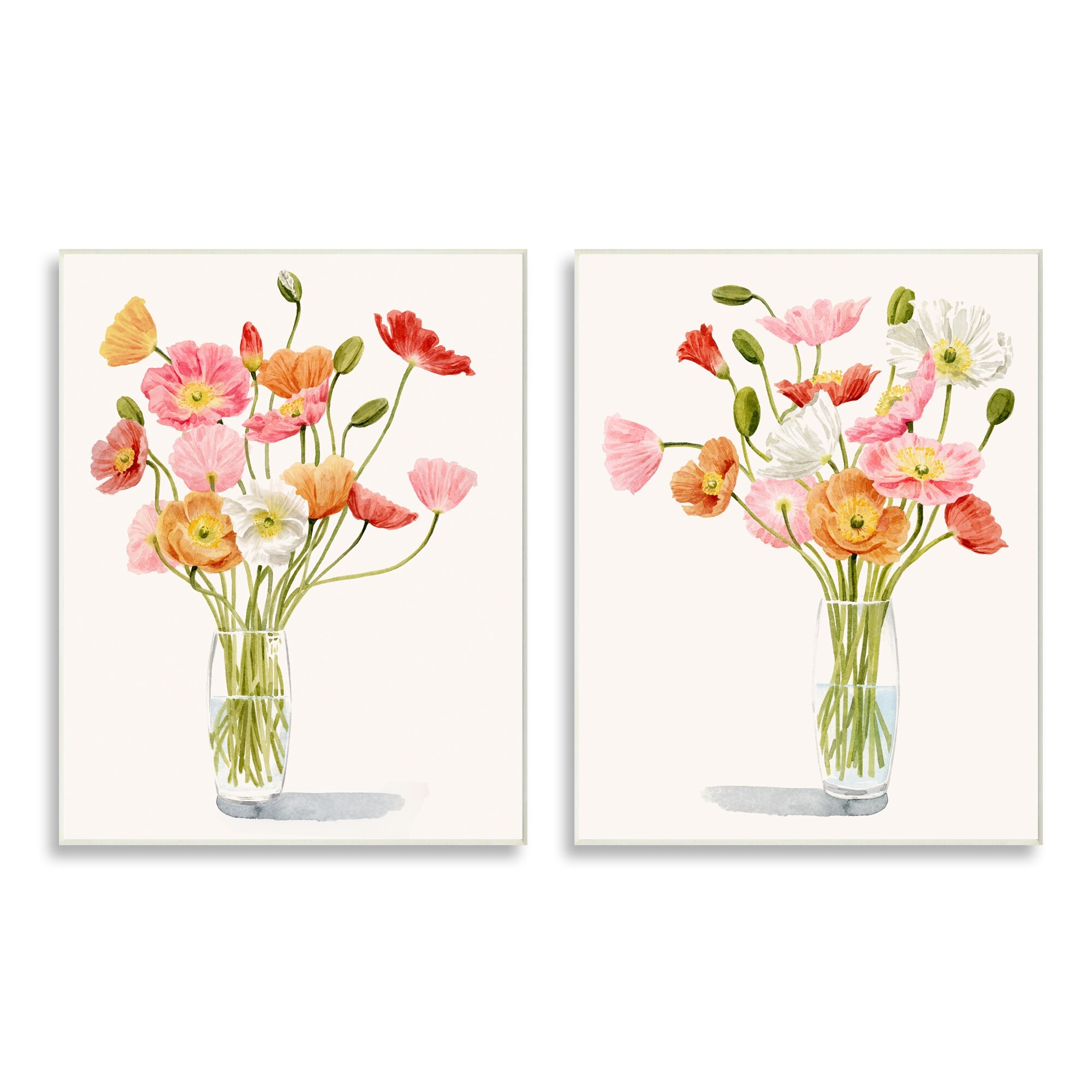 Stupell Industries Dazzling Flower Blossoms Soft Pink Glass Bouquets 2pc Multi Piece Wood Wall Art Set - Multi-Color