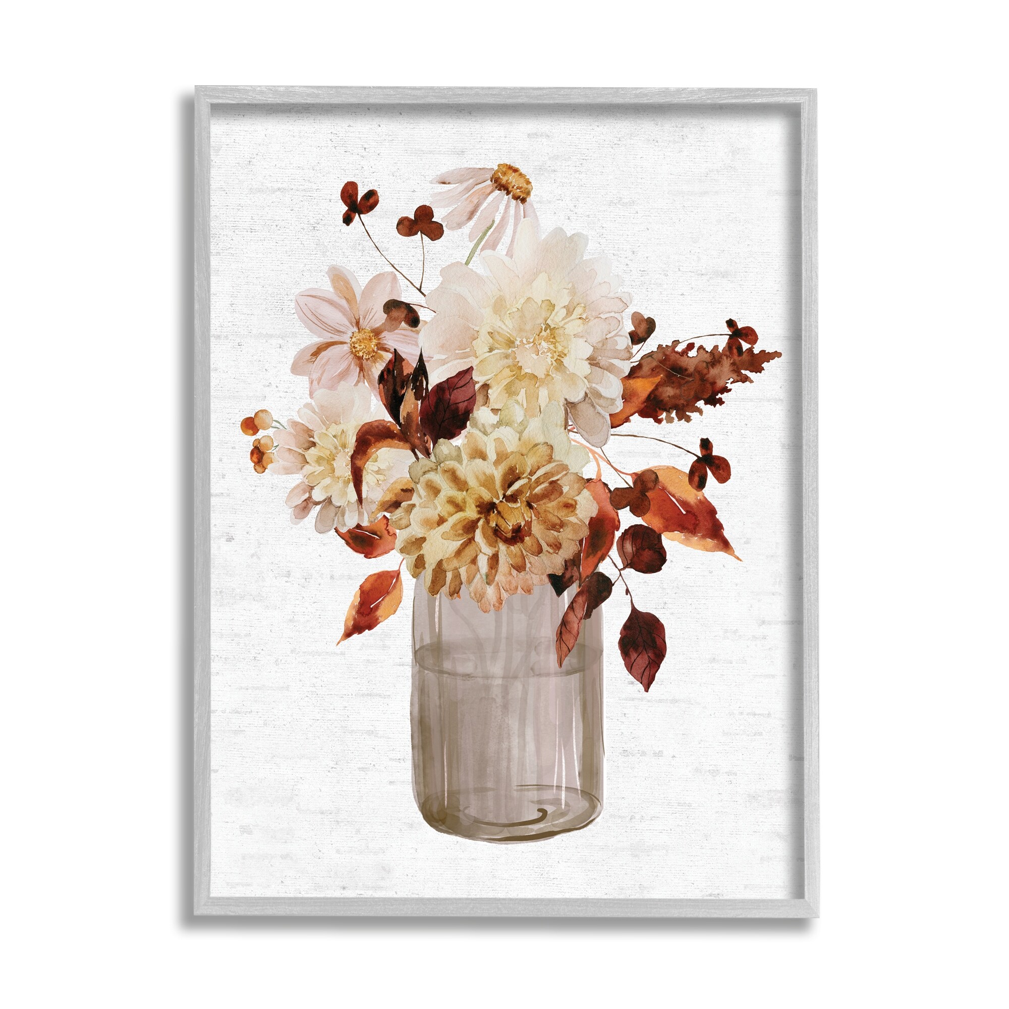 Stupell Industries Lovely Autumnal Flower Bouquet Rustic Grain Pattern Framed Wall Art - Brown