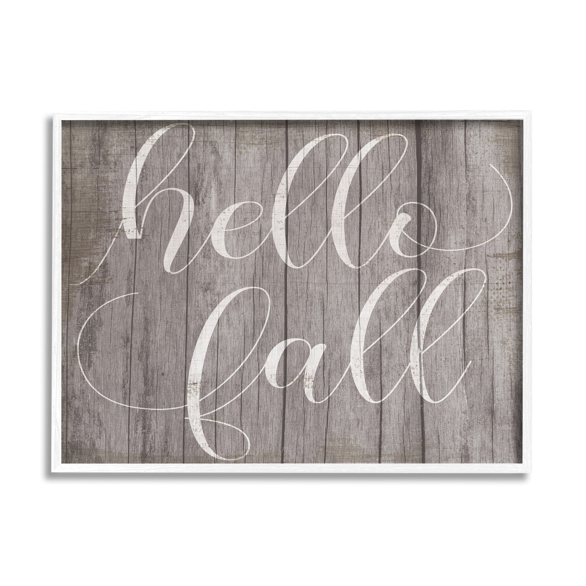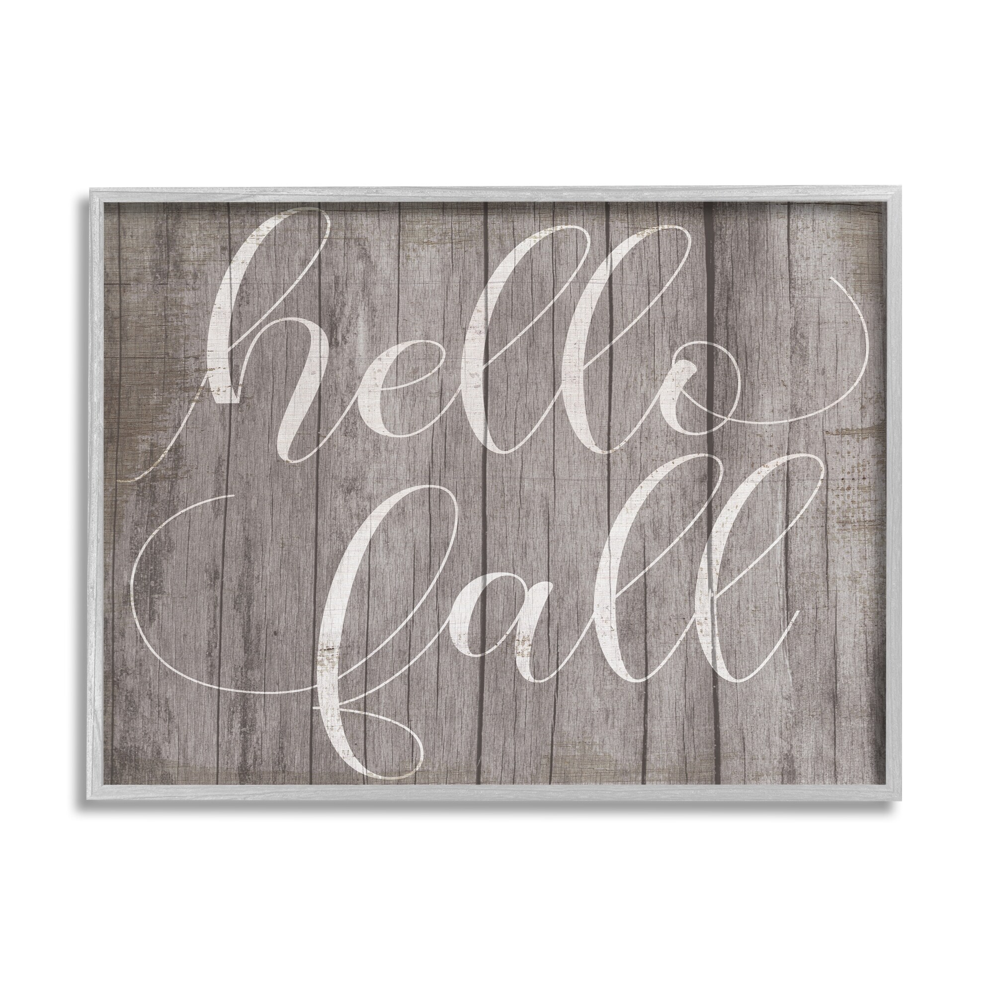 Stupell Hello Fall Phrase Rustic Grain Pattern Minimal Typography Framed Wall Art - Brown