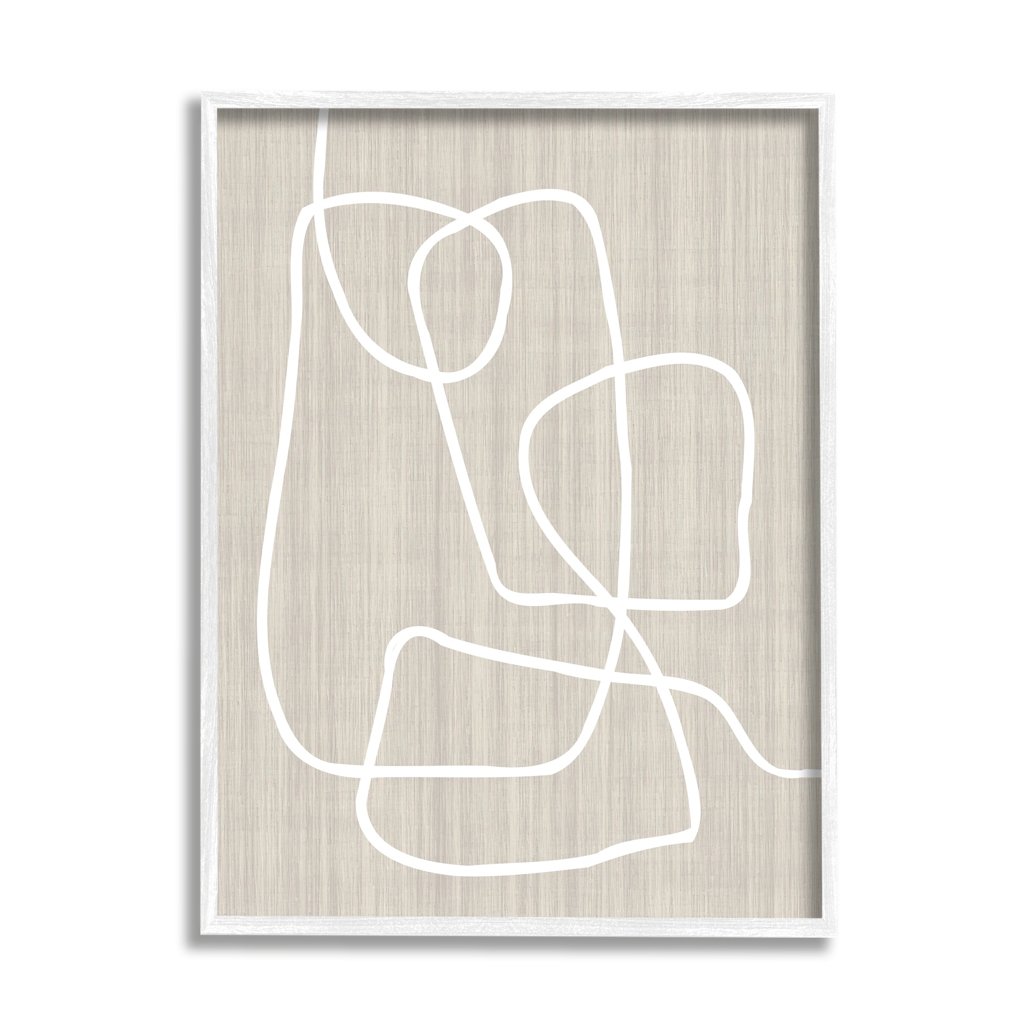 Stupell Industries Minimal White Line Beige Grain Pattern Modern Framed Wall Art