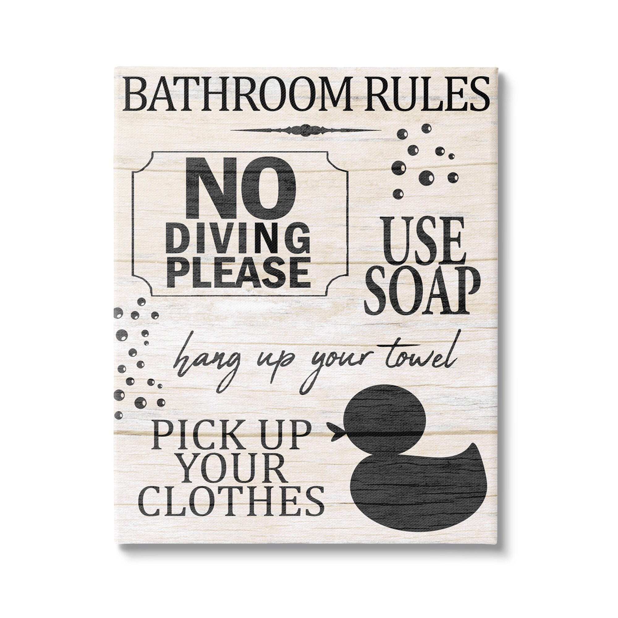 Stupell Industries Bathroom Rules Rustic Grain Pattern Design Sign Canvas Wall Art - White