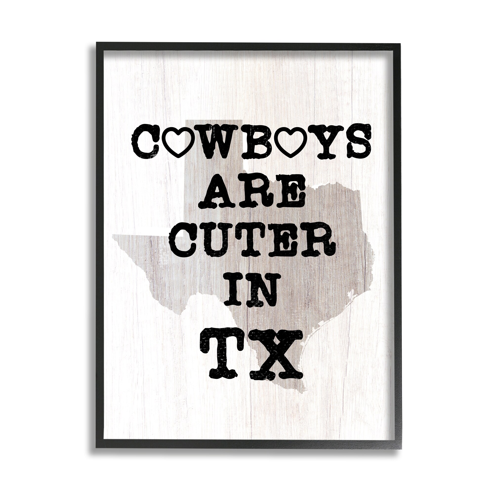 Stupell Industries Cowboys Cuter in Texas Text Rustic Grain Pattern Framed Wall Art - Black