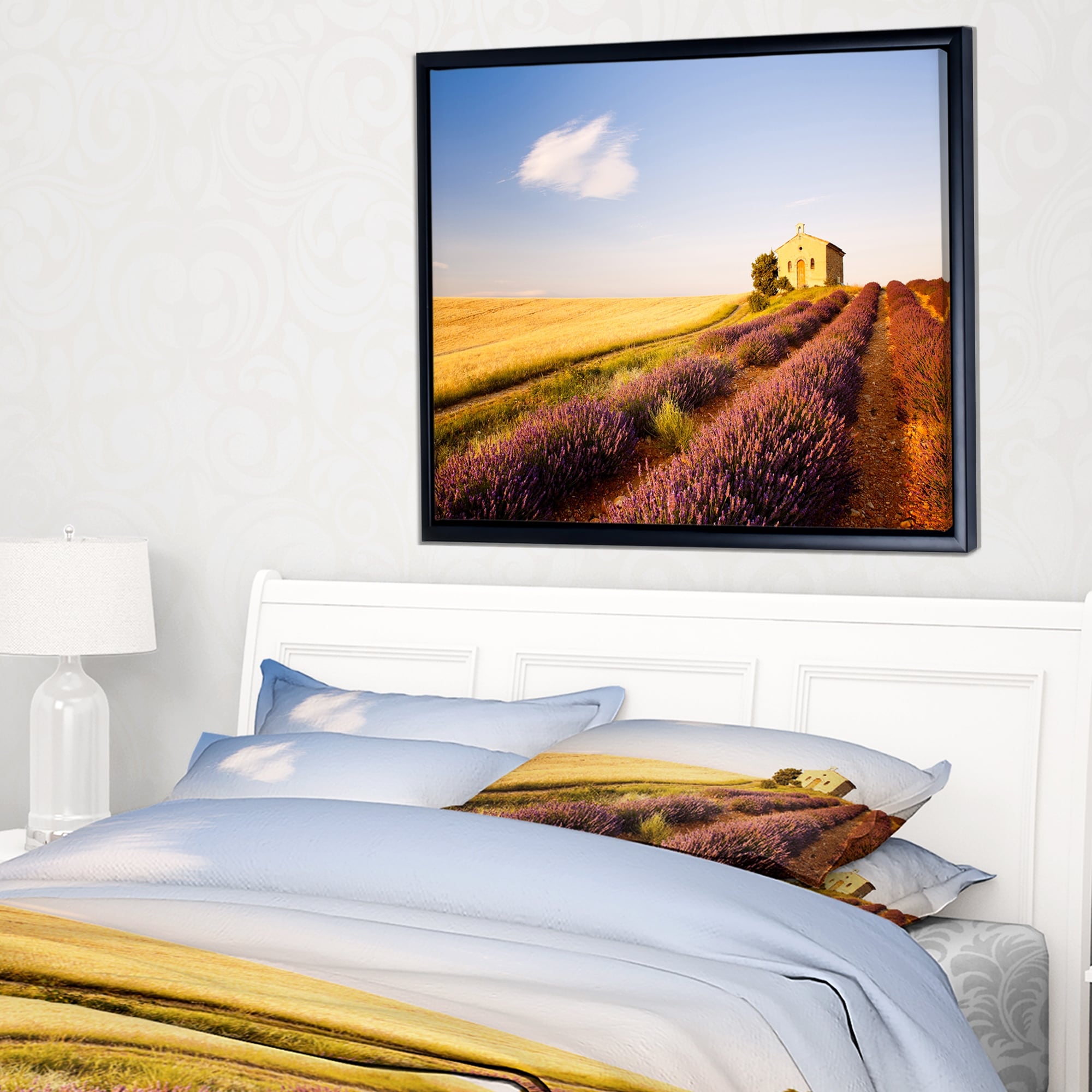 Designart "Chapel with Lavender and Grain Field" Large Flower Canvas Wall Art