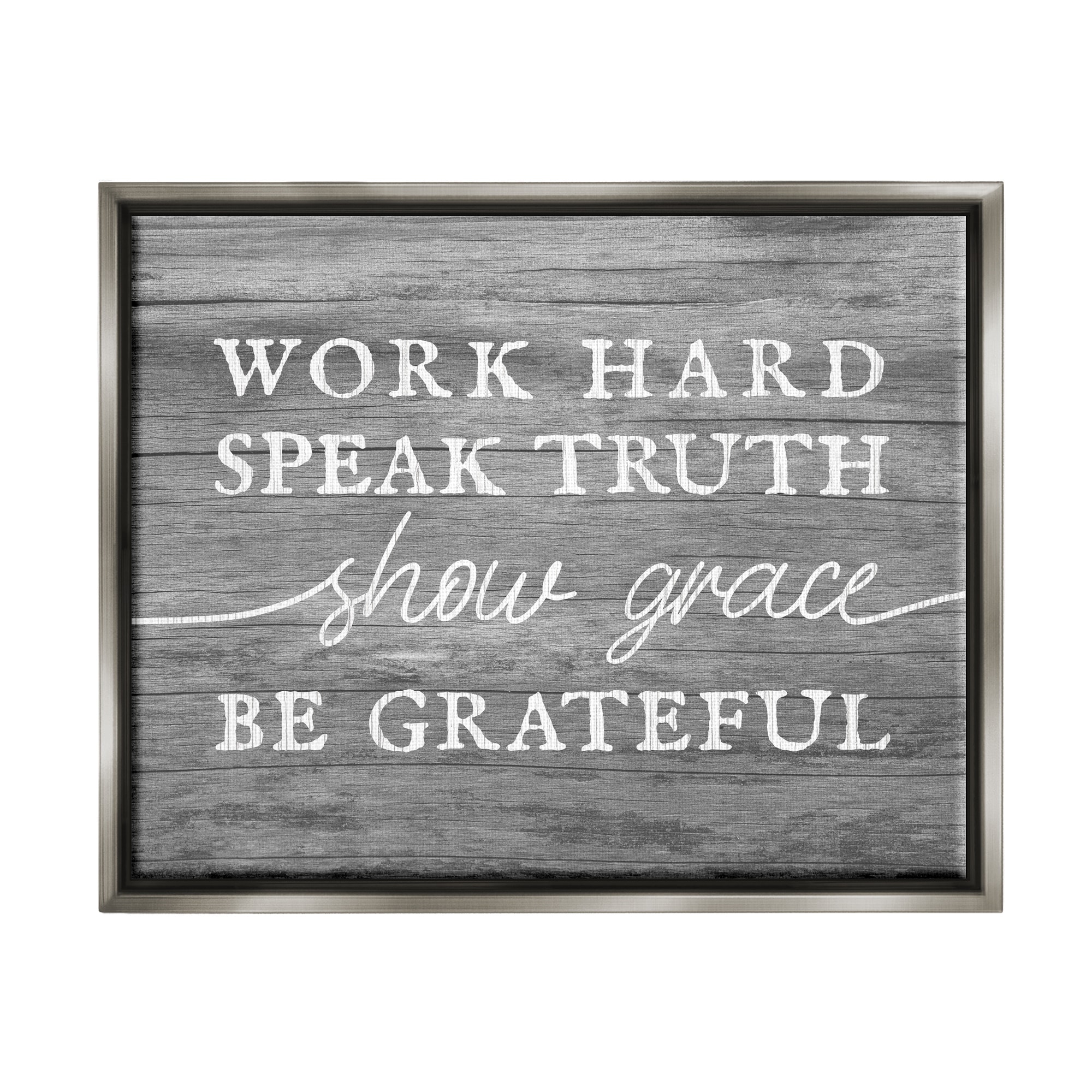 Stupell Industries Be Grateful Rustic Grain Pattern Motivational Phrase Floater Frame, Design by Daphne Polselli