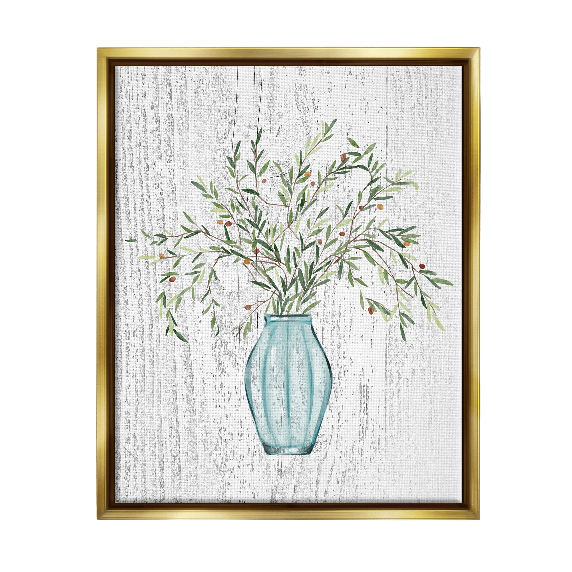 Stupell Botanical Bouquet Vase Hanging Leaves Grain Pattern Floater Frame, Design by Ziwei Li