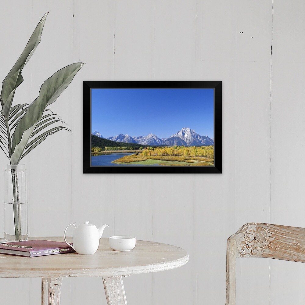 "Wyoming, Grand Teton National Park, Teton Mountains, Jackson Hole, Panoramic " Black Framed Print