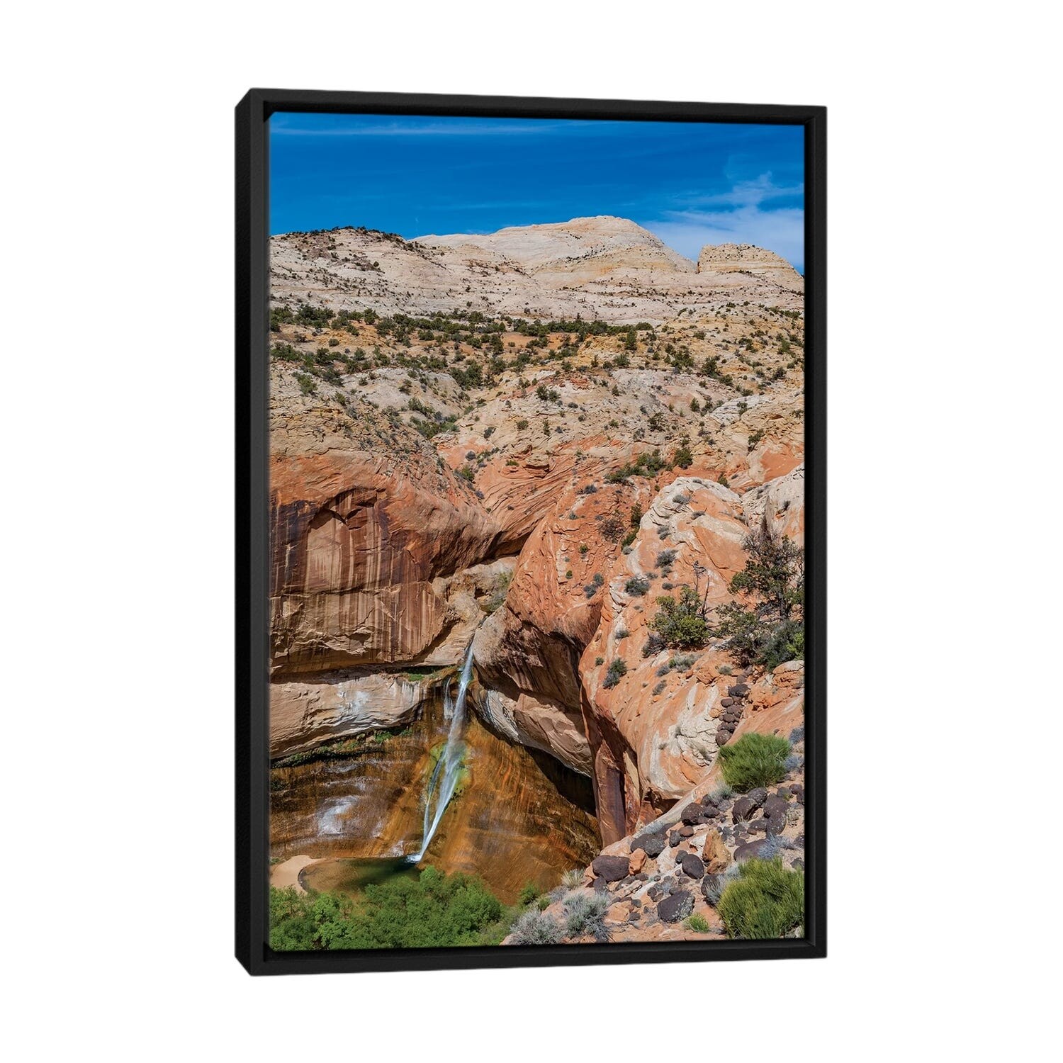 iCanvas "Waterfall In Desert, Calf Creek Falls, Grand Staircase-Escalante National Monument" by Jeff Foott Framed Canvas Print