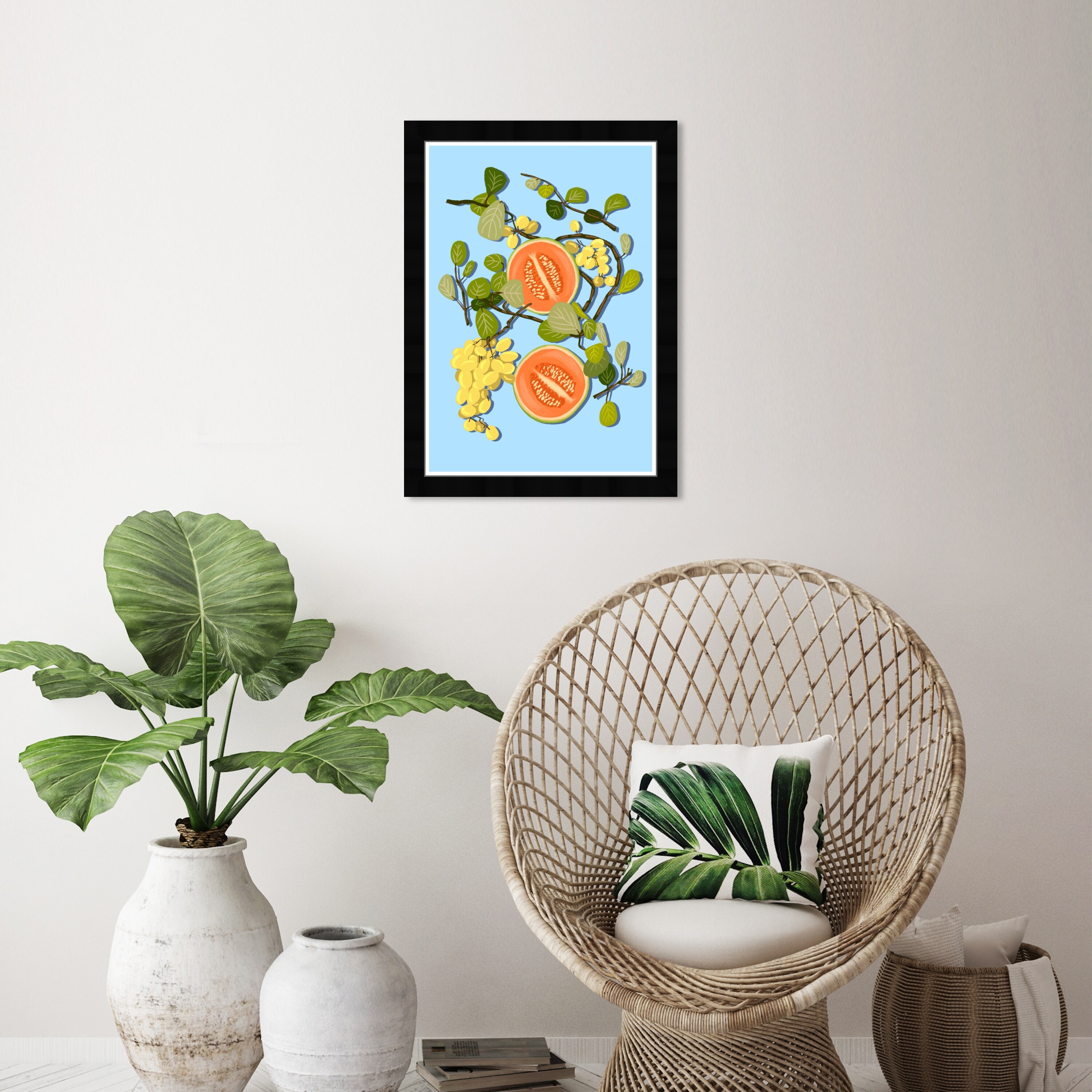 Wynwood Studio 'Grapes and Cantaloupe' Food and Cuisine Wall Art Framed Print Fruits - Blue, Orange