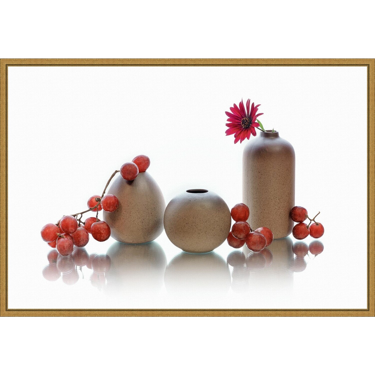Red Grapes and Jars Still Life by Lydia Jacobs (23 x 16 in.), Framed Canvas Wall Art Print - Sylvie Gold