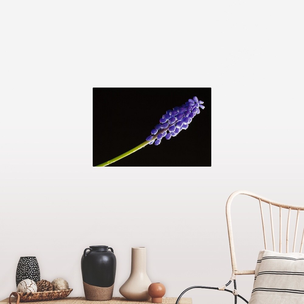 "Blue grape hyacinth flower blossom, close-up, black background." Poster Print - Multi