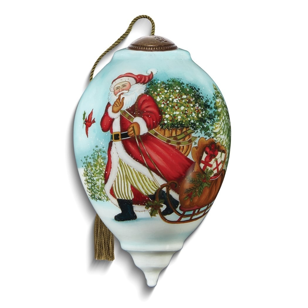 Curata Santa is on His Way Hand-Painted Glass Ornament