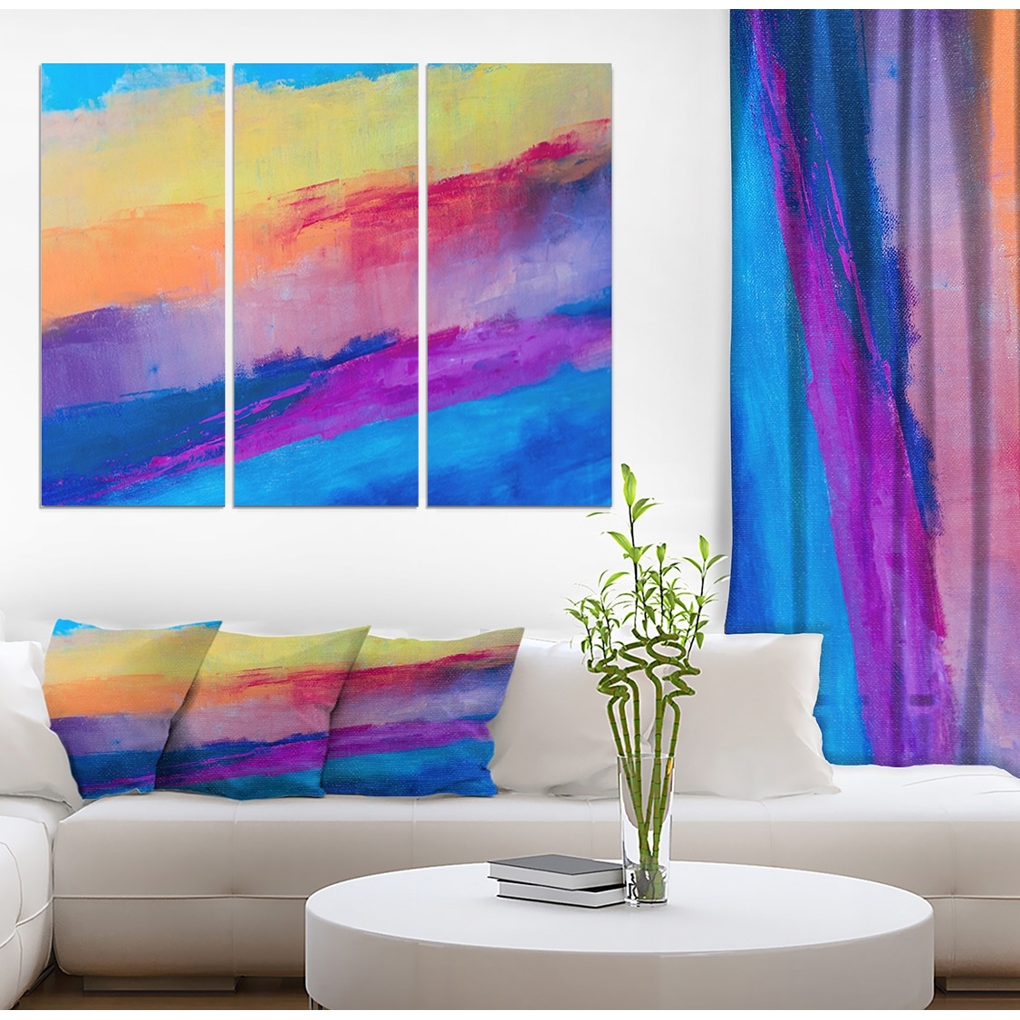 Designart "Colorful Brushstrokes Hand Drawn Painting" Contemporary Print on Wrapped Canvas set - 36x28 - 3 Panels