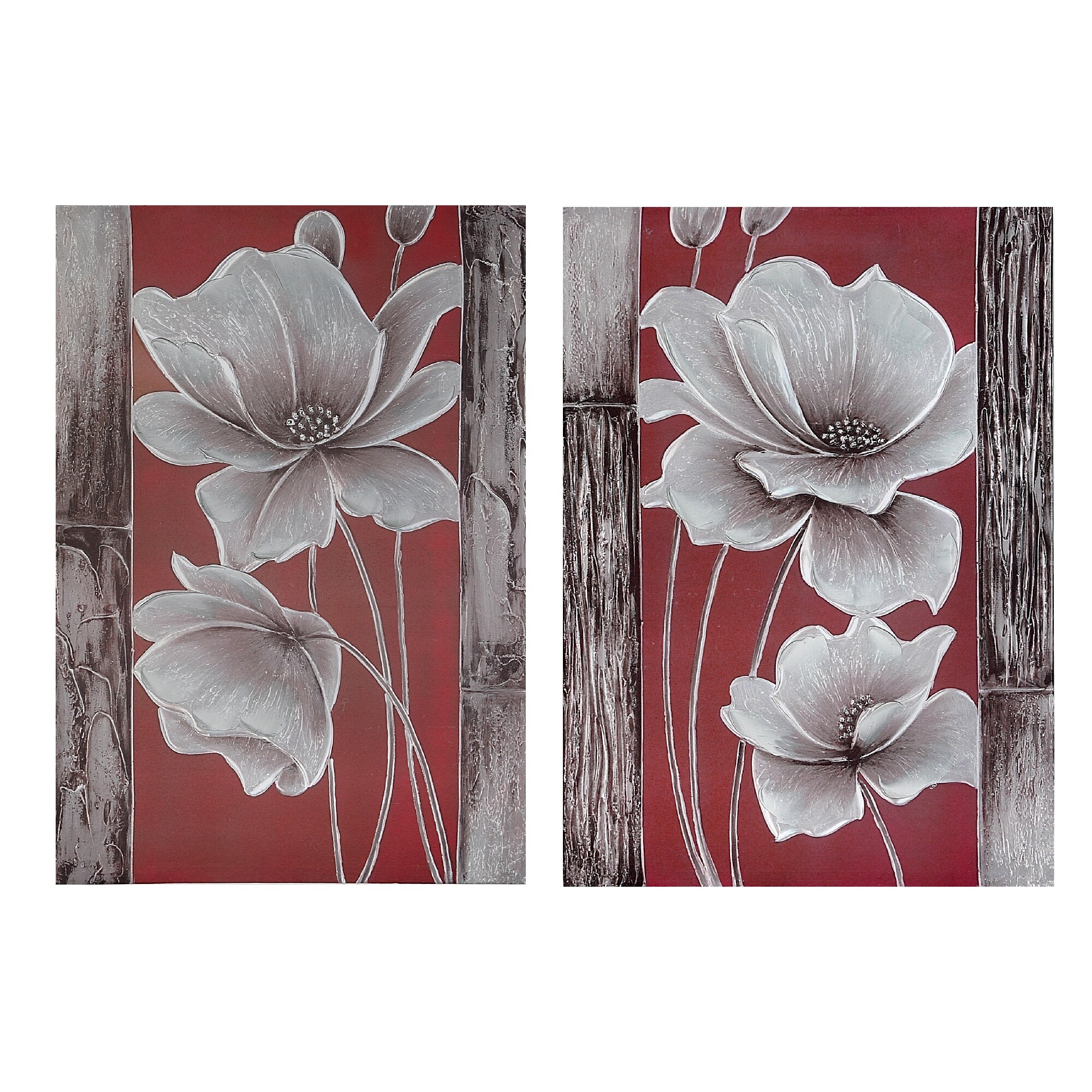 Hand Painted Canvas Wall Art (Blooms And Timber) - Set of 2