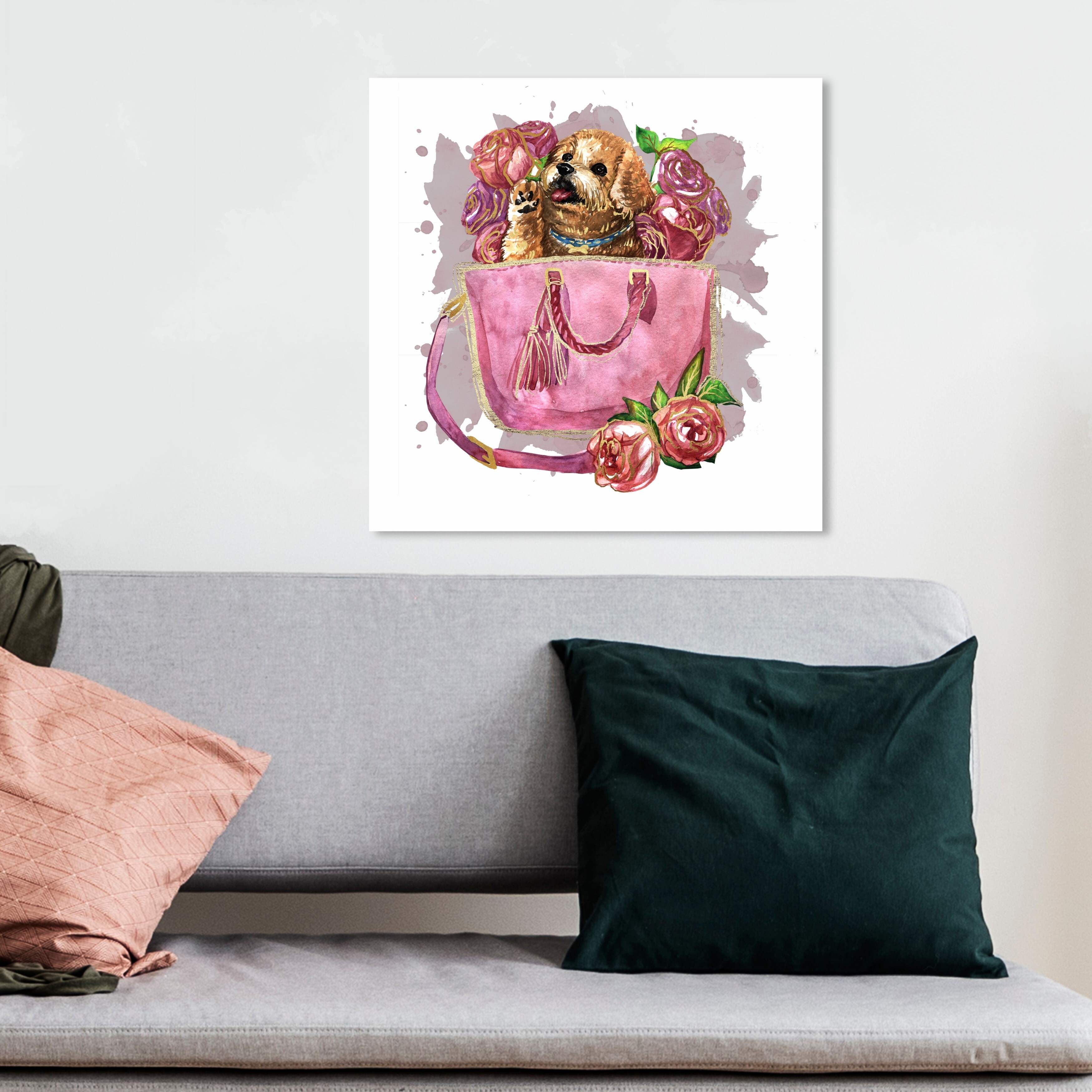 Oliver Gal 'Floral Bag Buddy' Fashion and Glam Wall Art Canvas Print Handbags - Pink, Gray