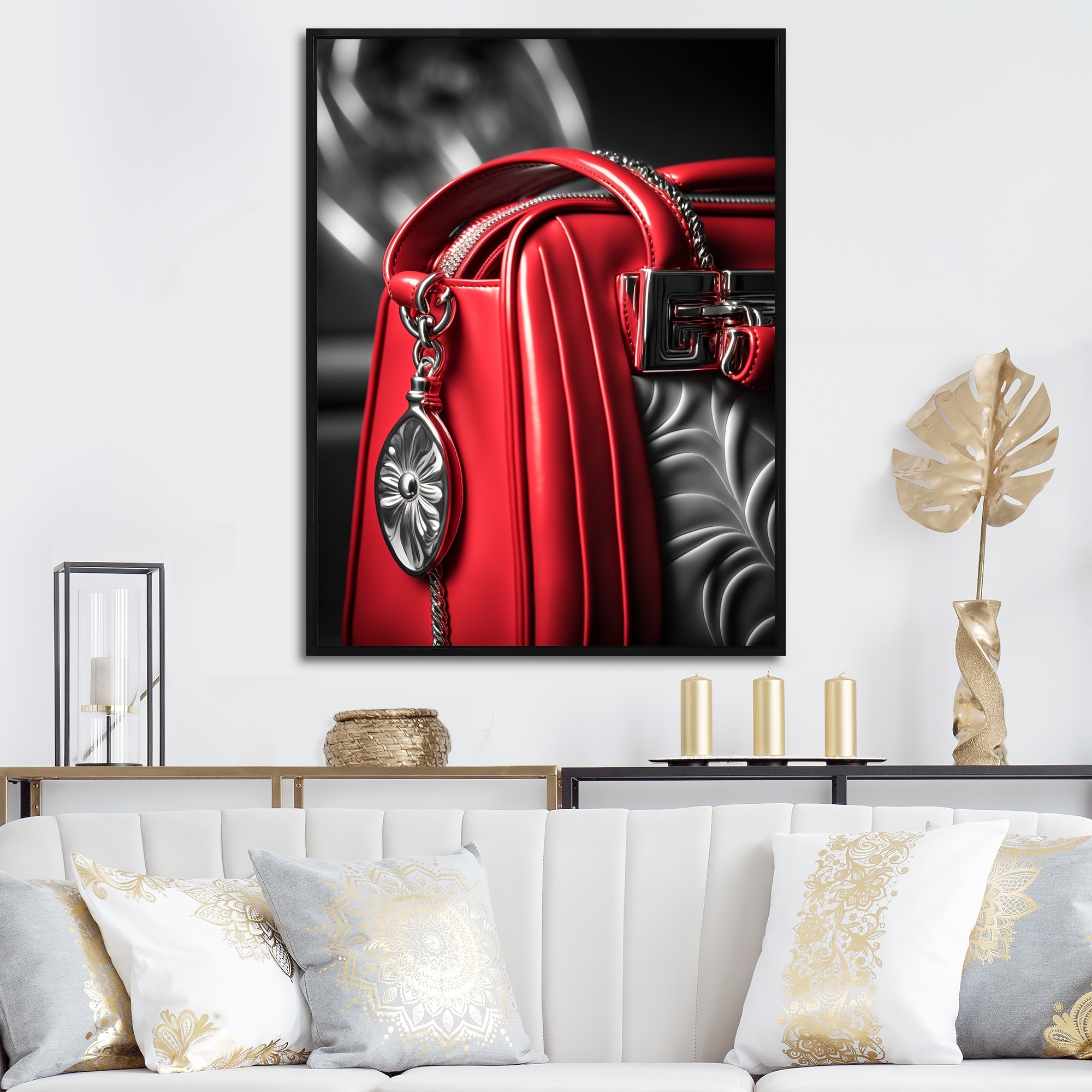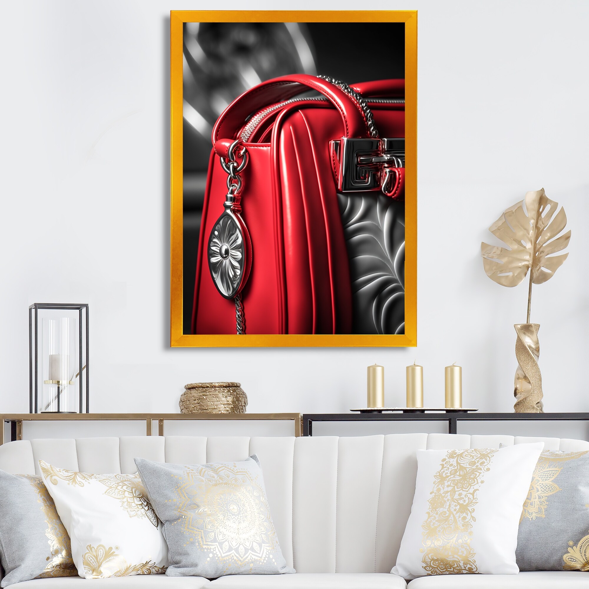 Designart "Stylish Glam Handbag in Red And Black" Fashion Framed Art Print