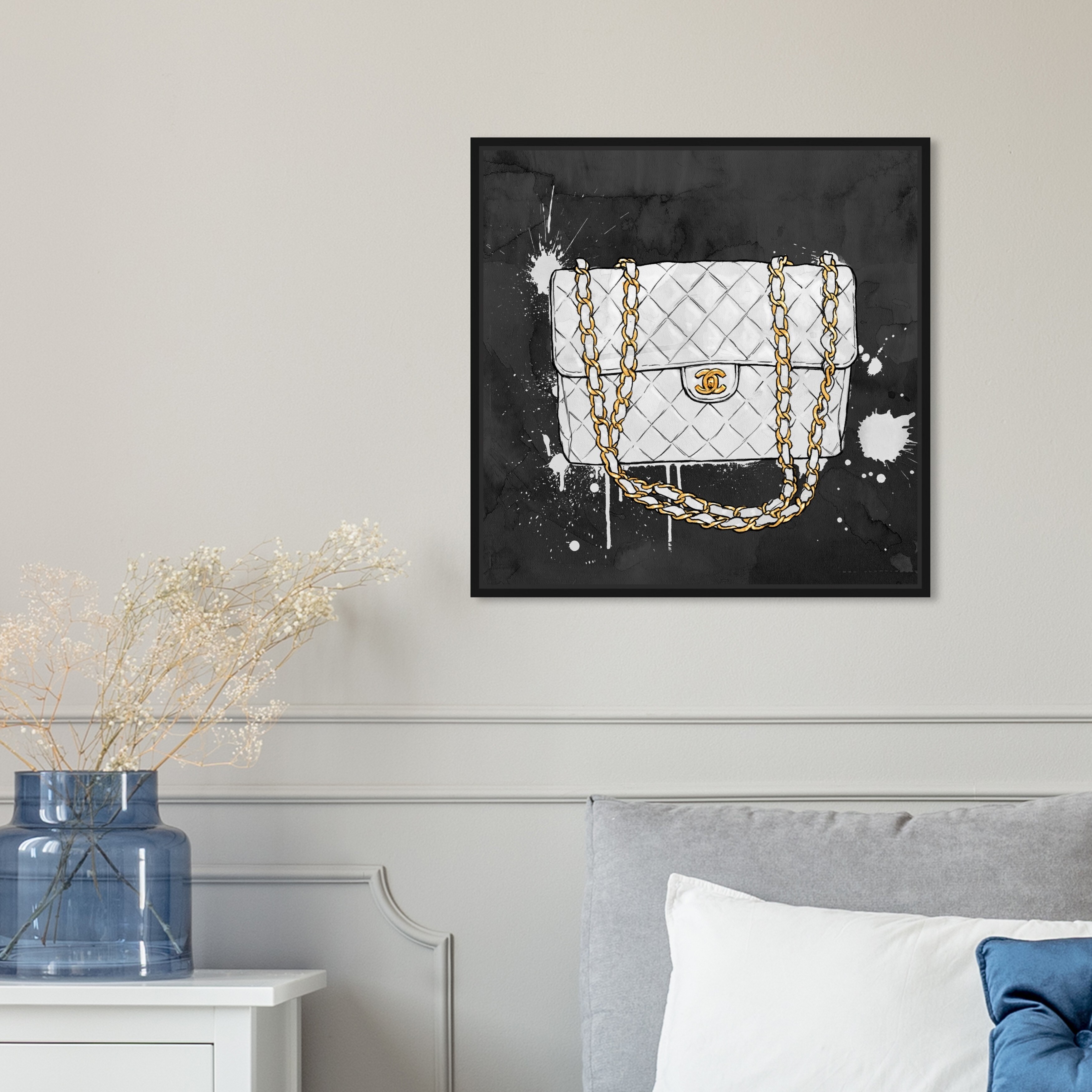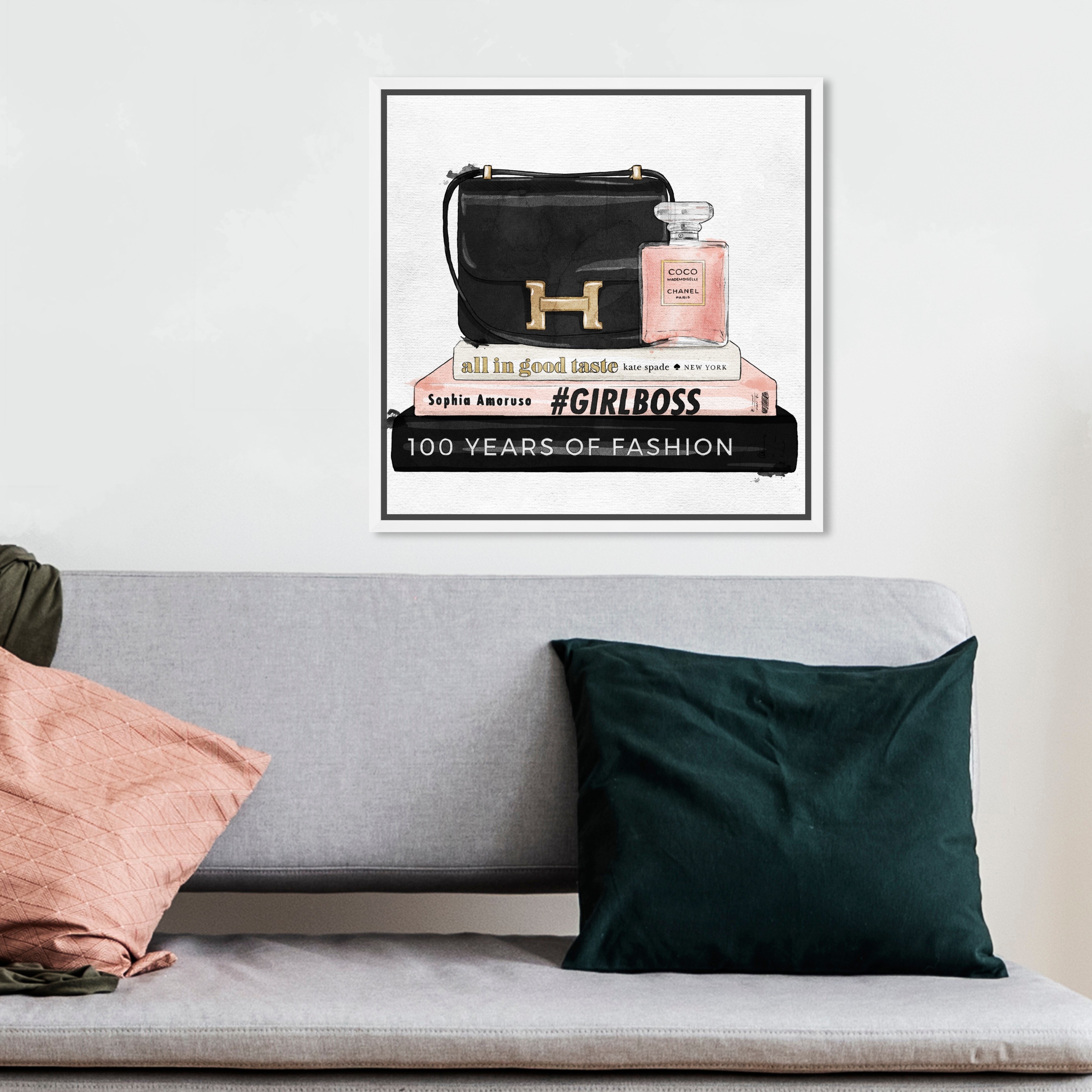 Oliver Gal 'Bulletproof' Fashion and Glam Wall Art Framed Canvas Print Handbags - Black, White