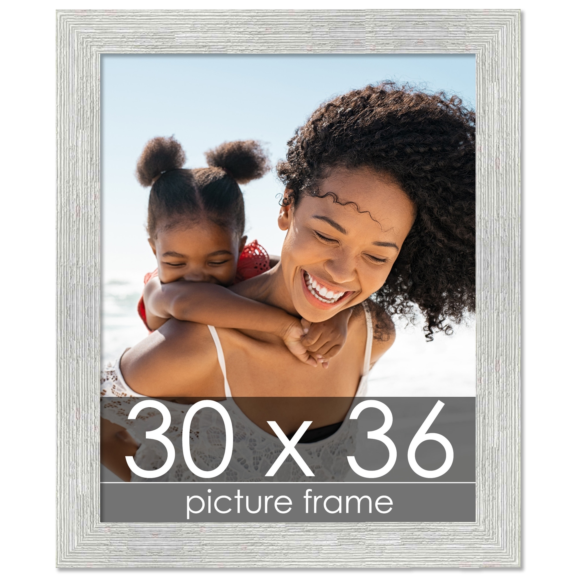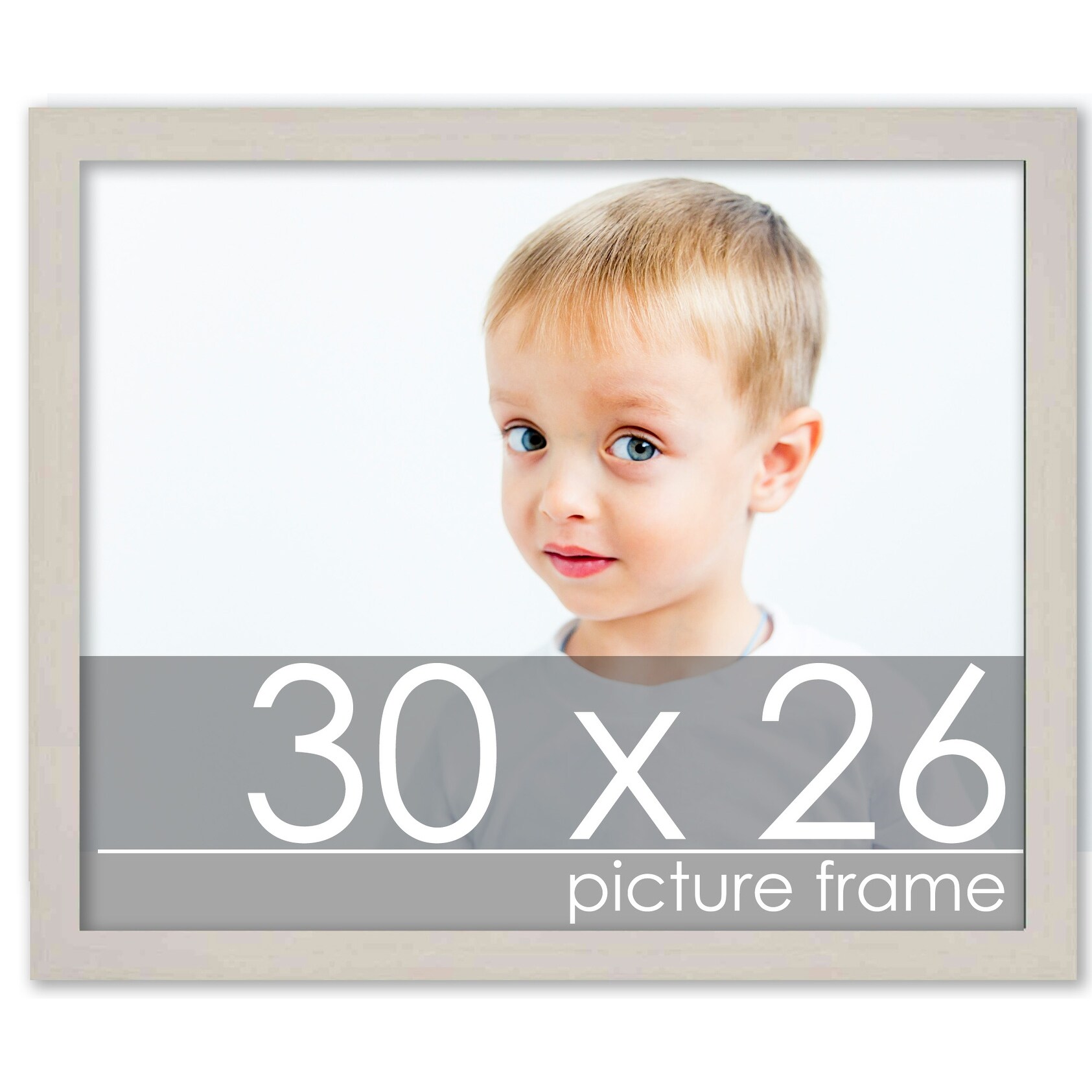 30x26 Traditional White Washed Wood Picture Frame - UV Acrylic, Foam Board Backing, & Hanging Hardware Included!