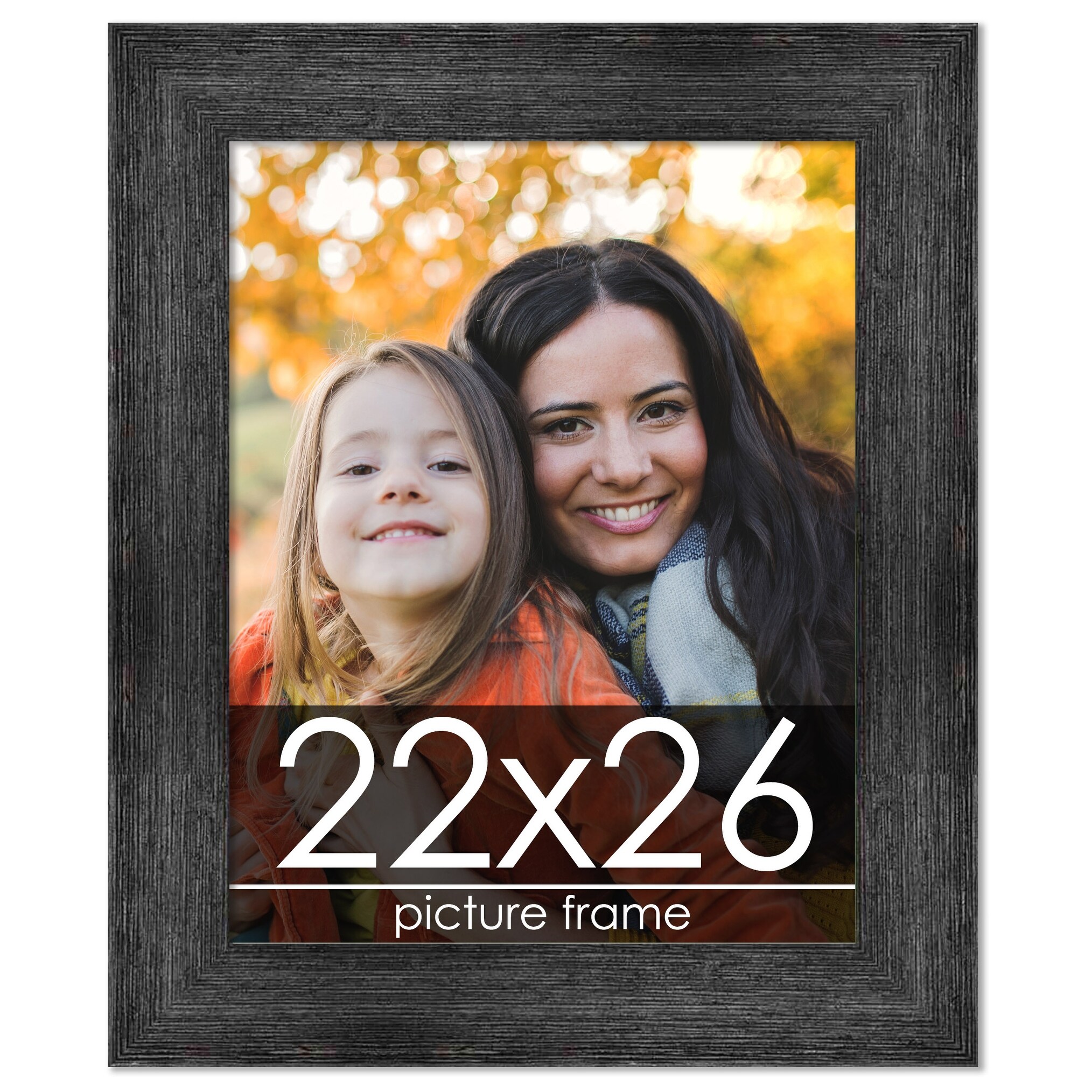 22x26 Distressed/Aged Black Wood Picture Frame - UV Acrylic, Foam Board Backing, & Hanging Hardware Included!