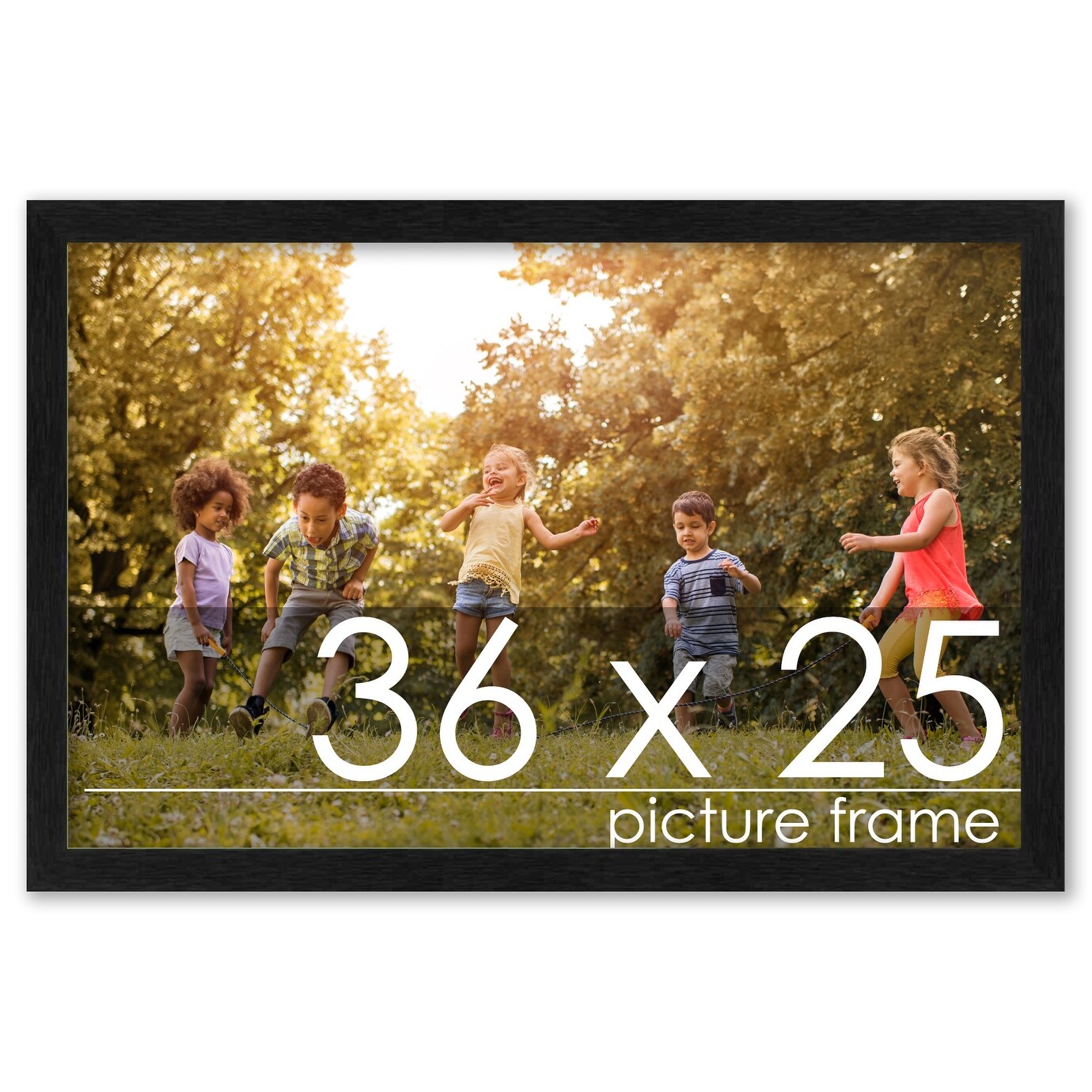 36x25 Traditional Black Wood Picture Frame - UV Acrylic, Foam Board Backing, & Hanging Hardware Included!