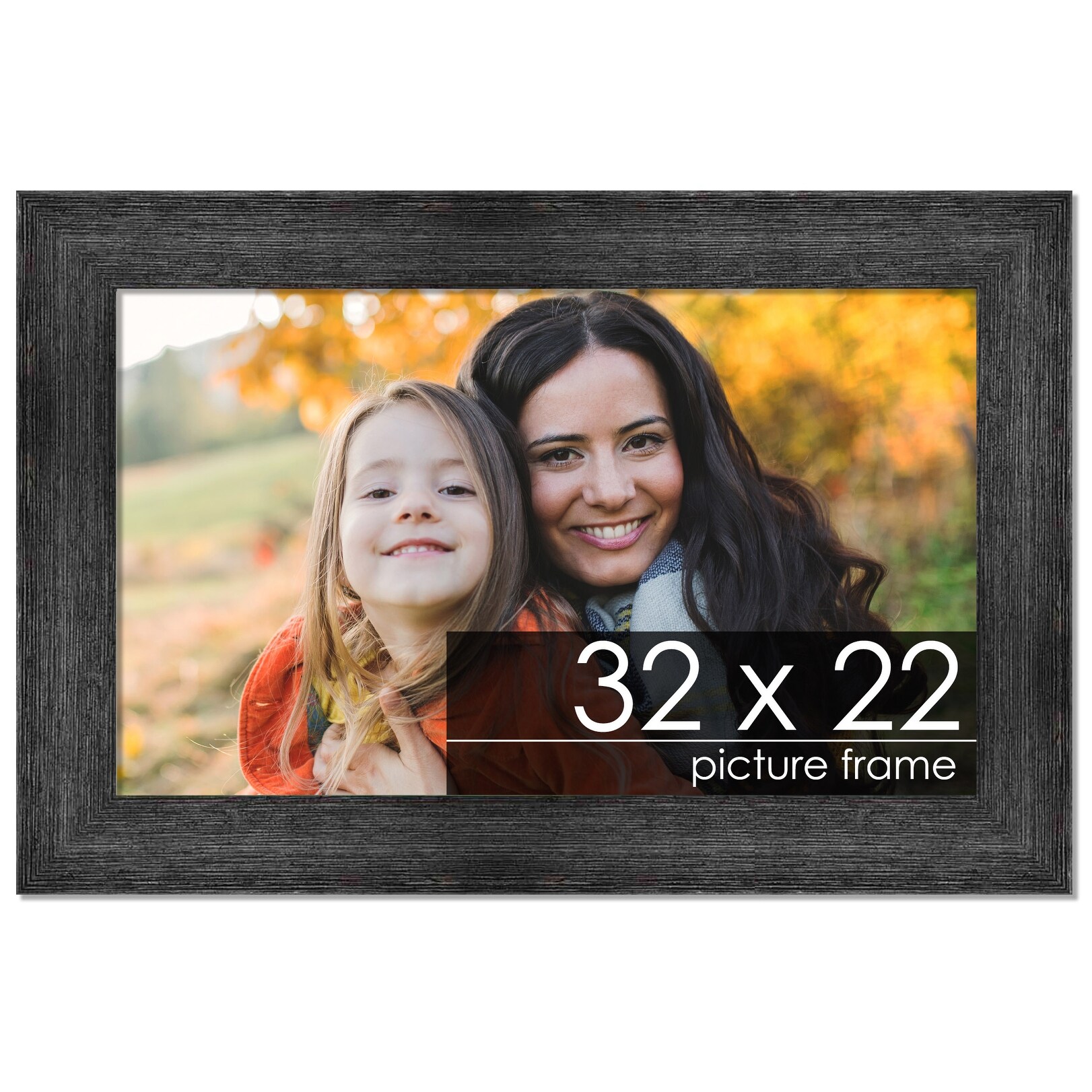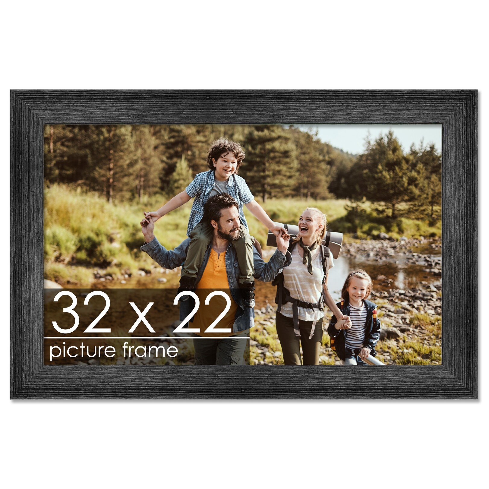 32x22 Distressed/Aged Black Wood Picture Frame - UV Acrylic, Foam Board Backing, & Hanging Hardware Included!