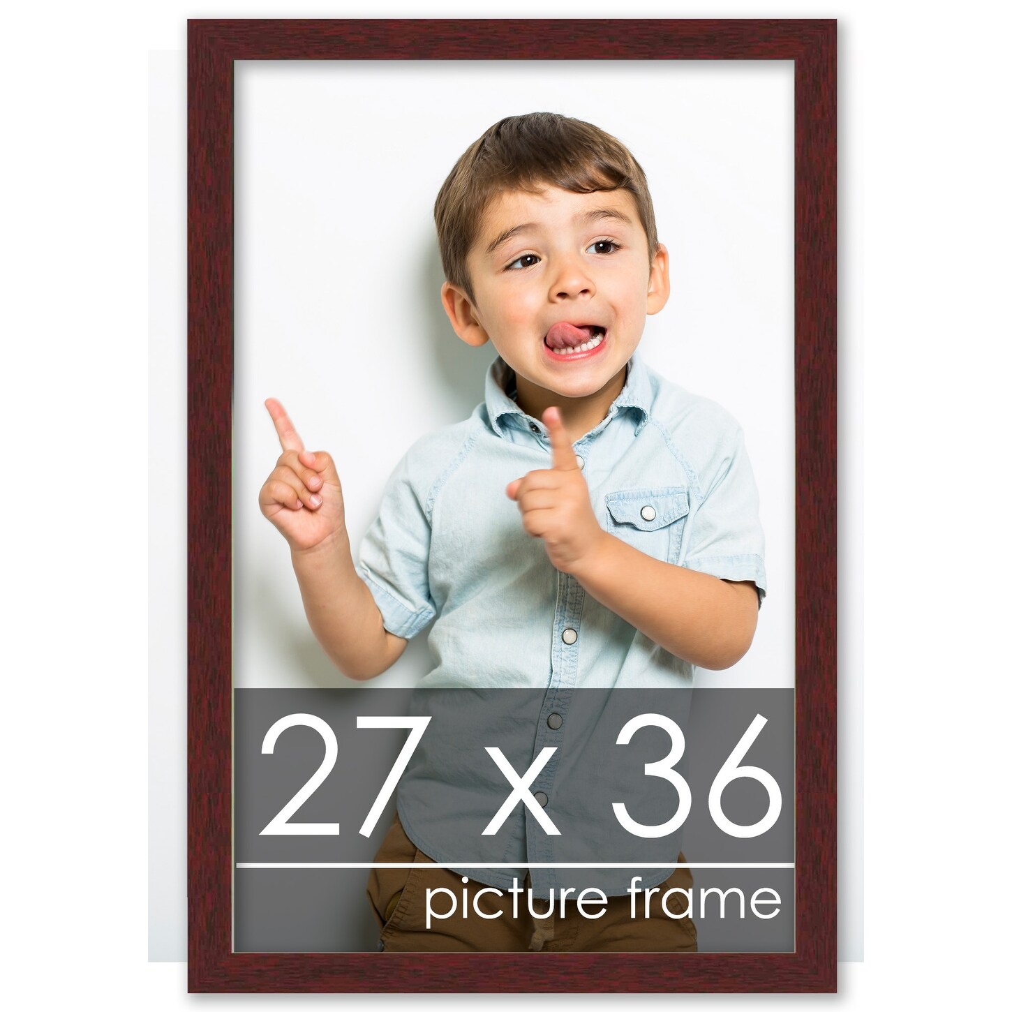 27x36 Traditional Mahogany Wood Picture Frame - UV Acrylic, Foam Board Backing, & Hanging Hardware Included!