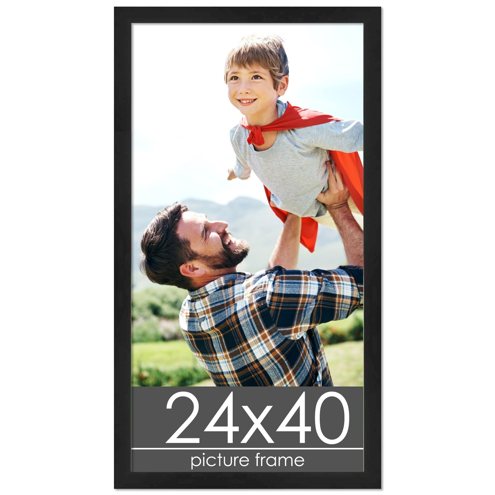 24x40 Lacquer Black Wood Picture Frame - UV Acrylic, Foam Board Backing, & Hanging Hardware Included!