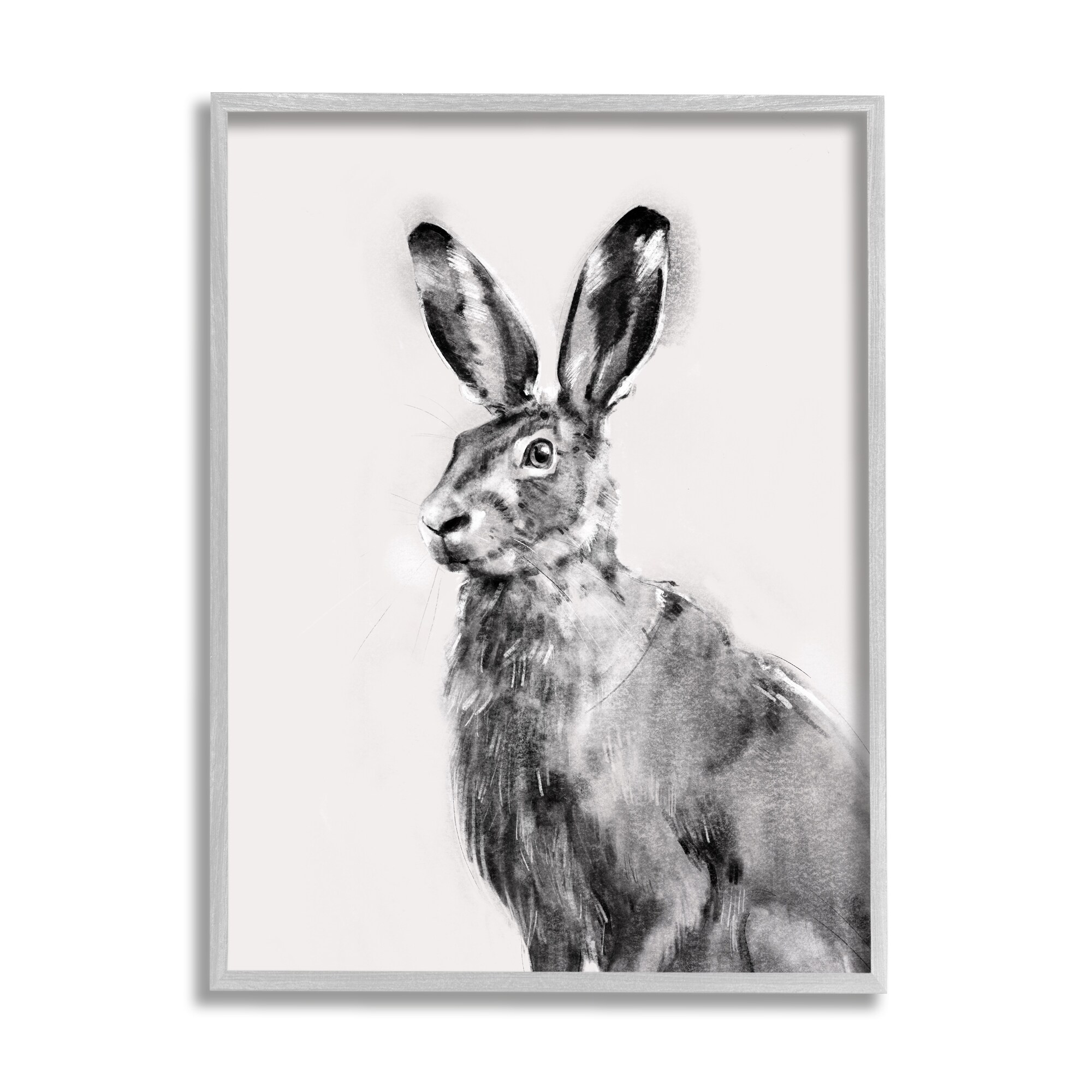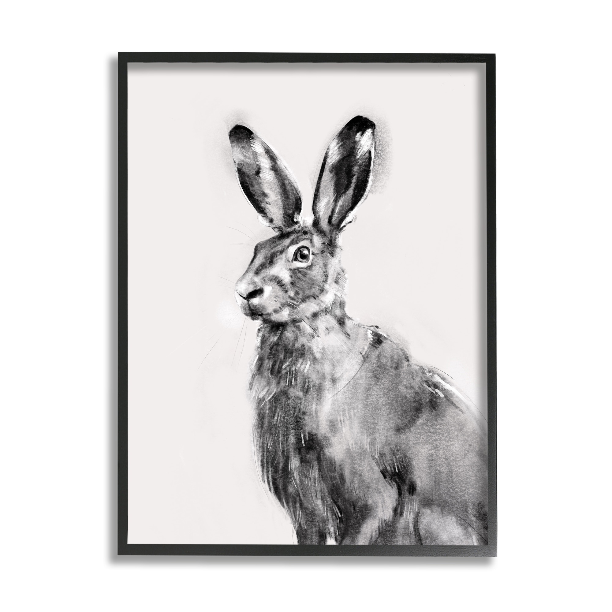 Stupell Large Wild Hare Portrait Minimal Black Off-White Illustration Framed Wall Art