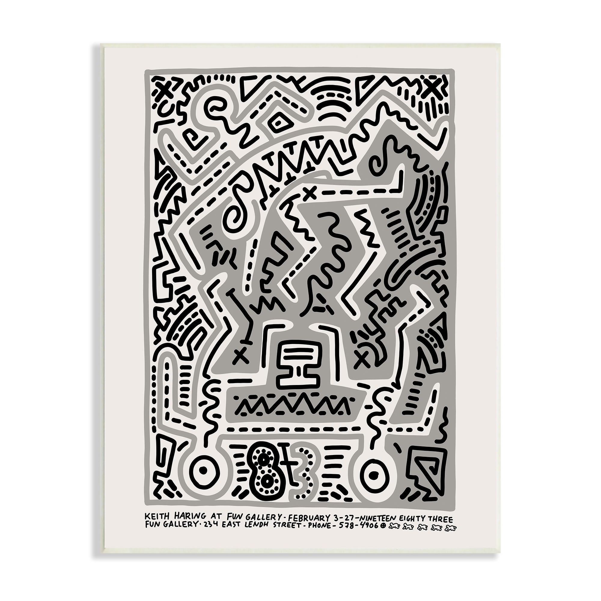 Stupell Keith Haring Monochrome Pop Style Squiggle Text Wood Wall Art - Grey