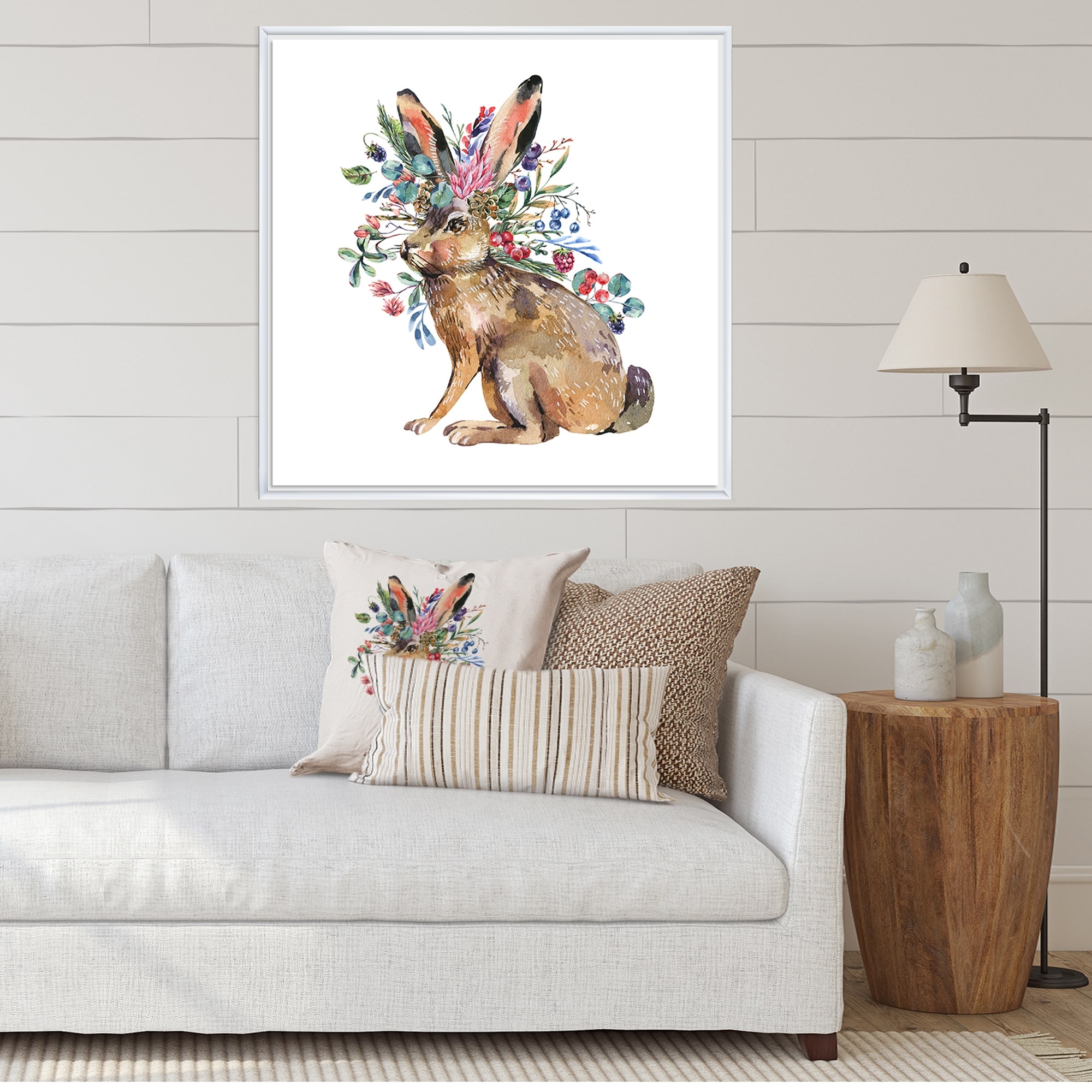 Designart "Hare Portrait With Colorful Flowers" Traditional Framed Children's Canvas Wall Art