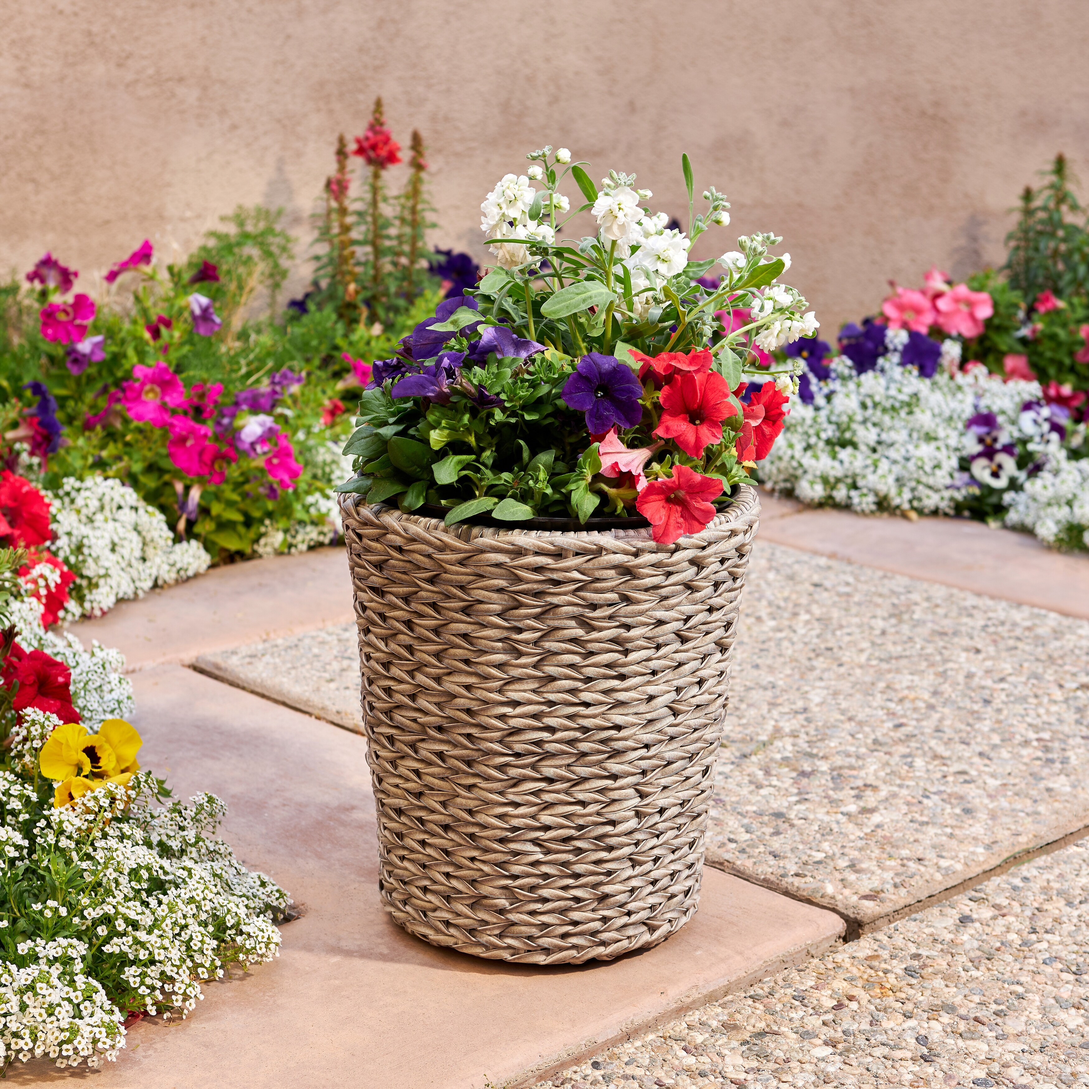 Haven Way Gray Resin Wicker Round Planter with Liner