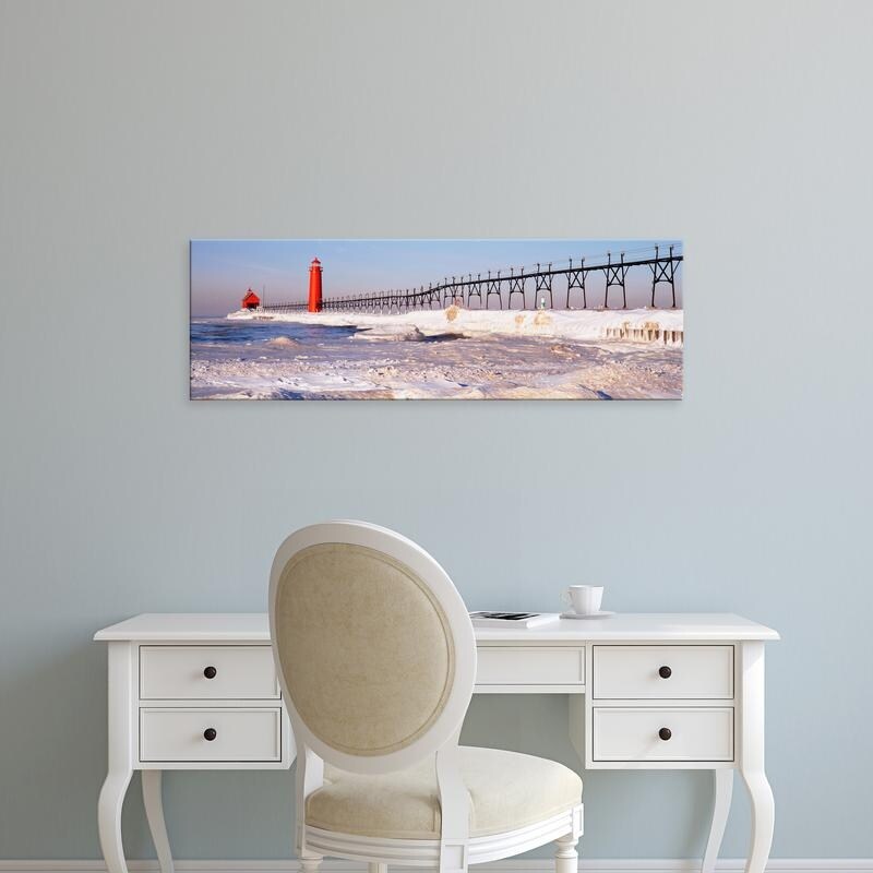 Easy Art Prints Panoramic Images's 'Lighthouse near a pier, Grand Haven, Michigan, USA' Premium Canvas Art