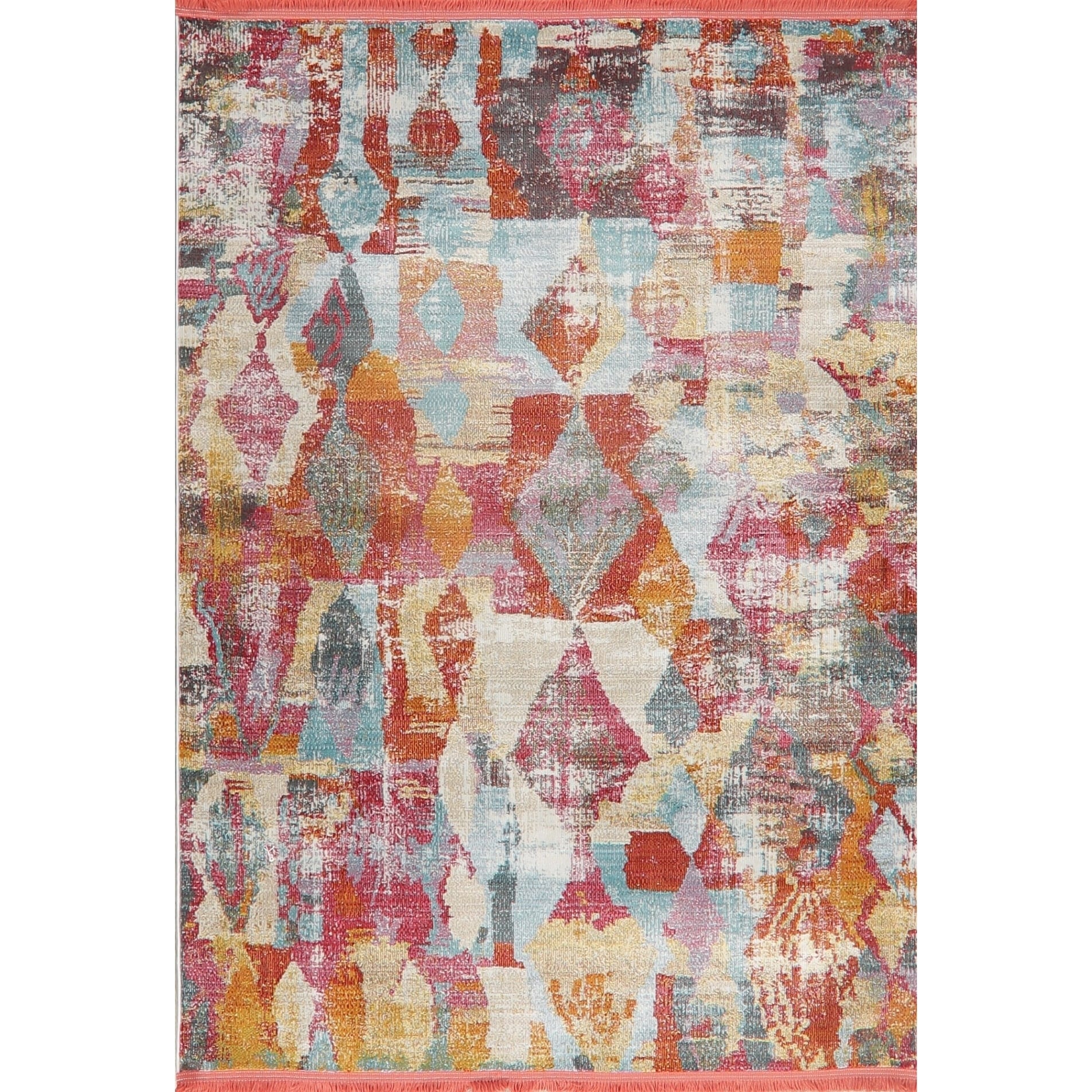 Abstract Vintage Style Distressed Area Rugs Multi-Color Heat-Set