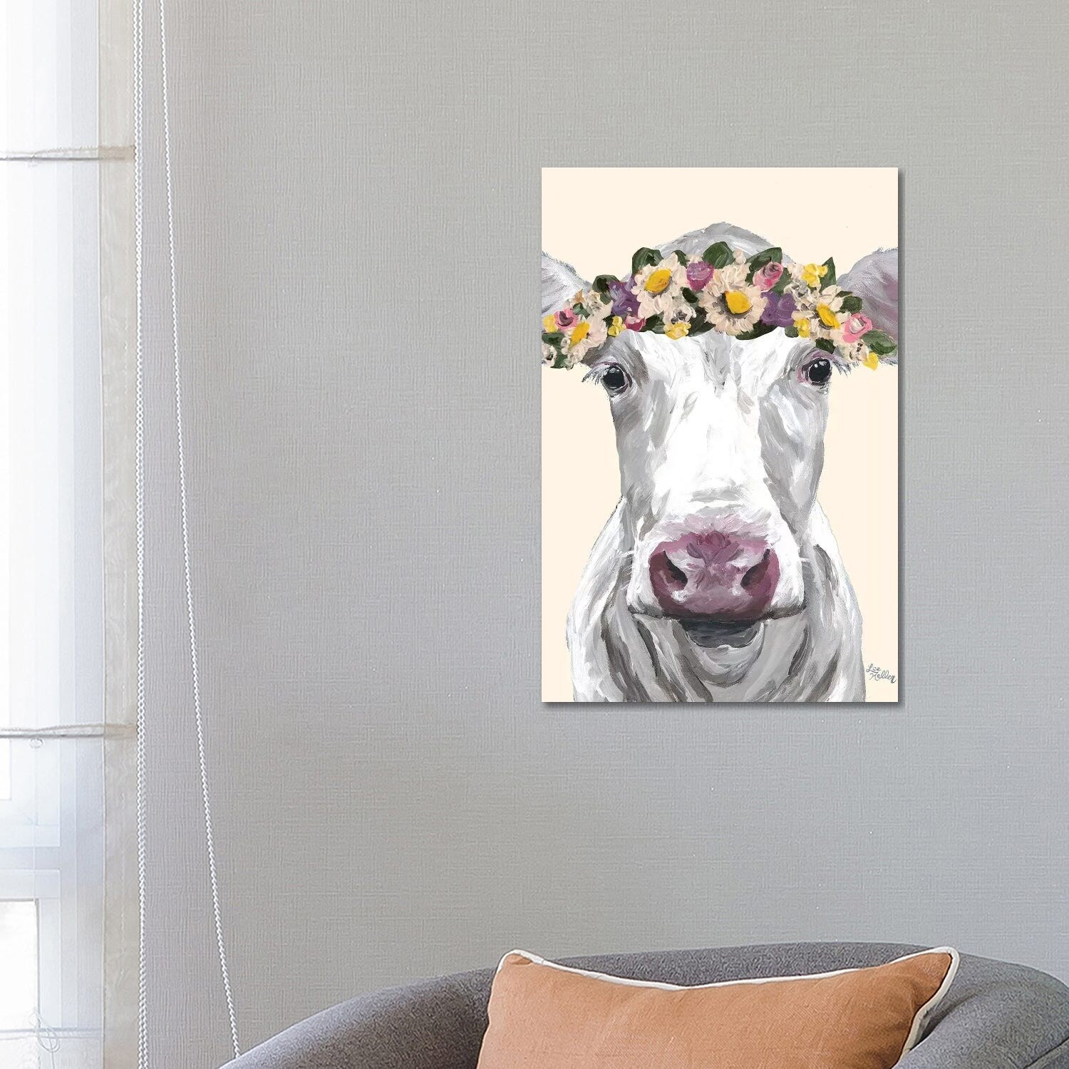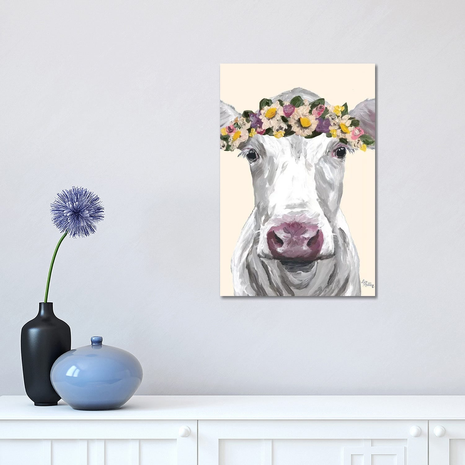 iCanvas "Cow Mabel Flowers on Cream" by Hippie Hound Studios Canvas Print