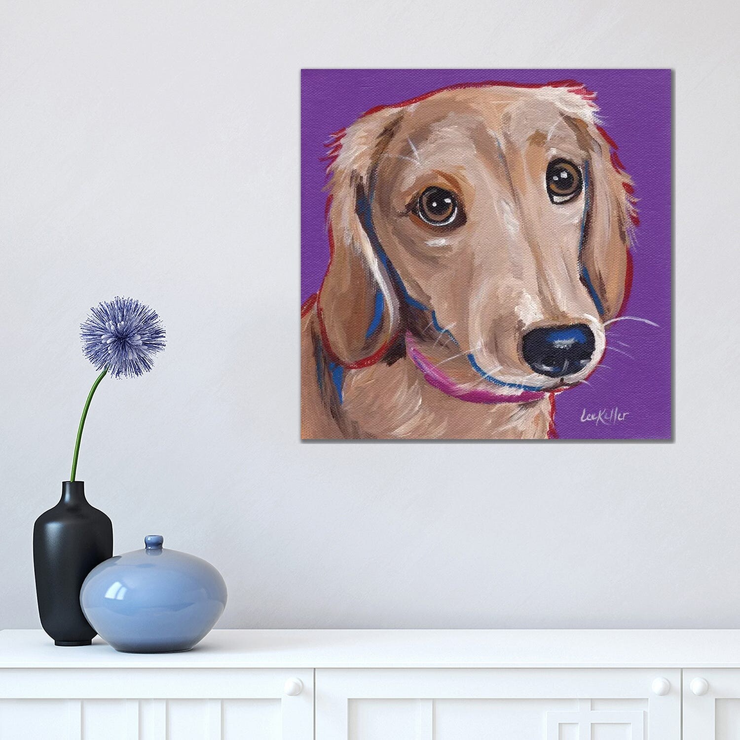 iCanvas "Daschund On Purple" by Hippie Hound Studios Canvas Print